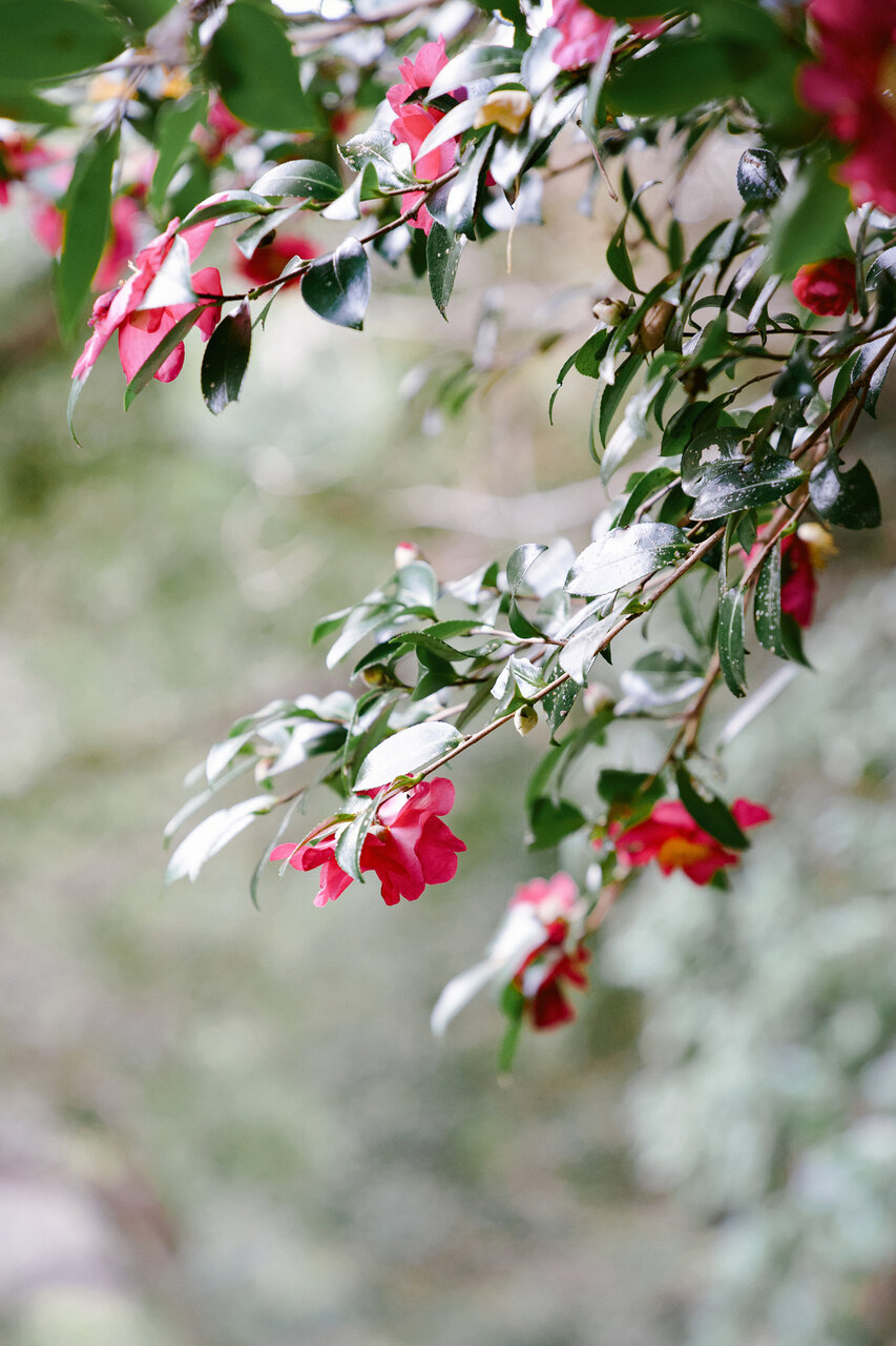 12月の河津七滝周辺では、鮮やかな紅葉の残り香と、寒さに負けず咲くサザンカなどの冬の花々が、訪れる人々を楽しませてくれます。