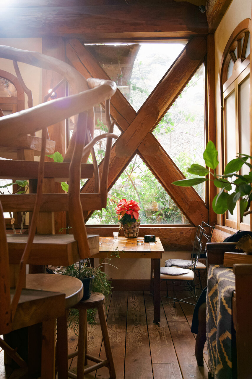 天城杉を使った建材や、らせん階段、かわいらしい形の窓など、細部にまでこだわりが詰まっていて、まるで絵本の中にいるような非日常感を味わえます。