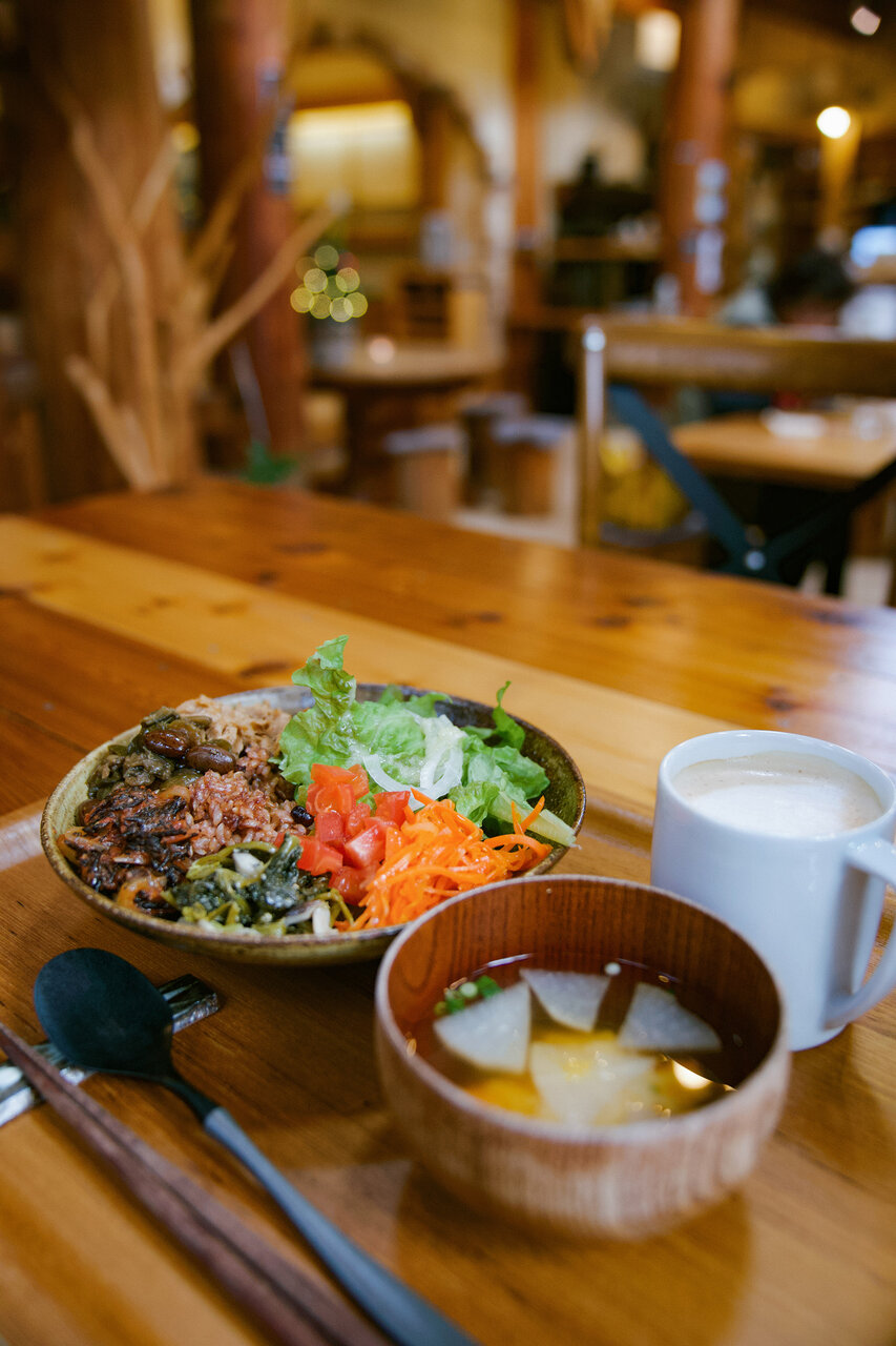 ランチには、「ホドホドボウル」をいただきました。酵素玄米の上に、彩り豊かな伊豆産の旬の野菜のおかずがたっぷり乗っています。ヘルシーさがありがたい!