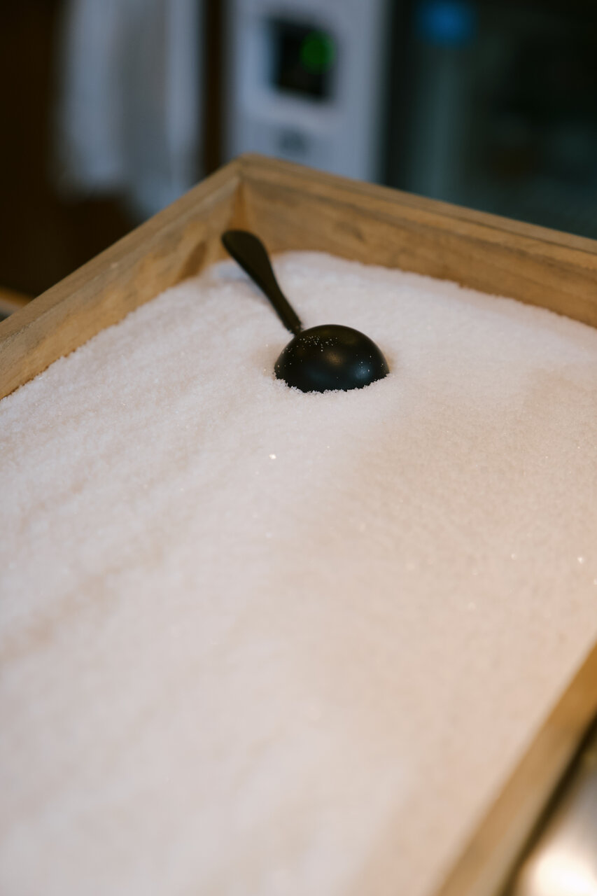 食後、お店の方から、ここで人気の「満月の塩のシュークリーム」に使われている特別な塩についてお話を伺いました。