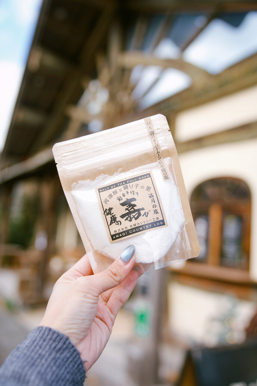 この塩は、なんと11月5日のスーパームーンの時の海水を使って作られた、伊豆の自然のパワーが詰まったものだそう。感動を伝えると、なんとその「満月の塩」を少しお土産にいただきました! 旅先でのこうした温かい交流も、写真とともに大切な思い出になります。