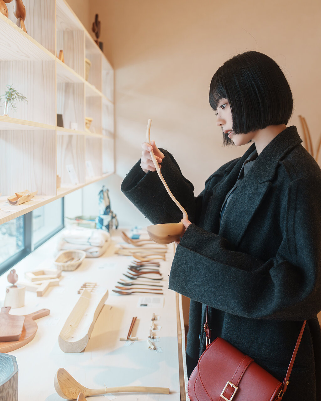 ひとつひとつ違う形が魅力。木のぬくもりを感じる芸術品がいっぱい。