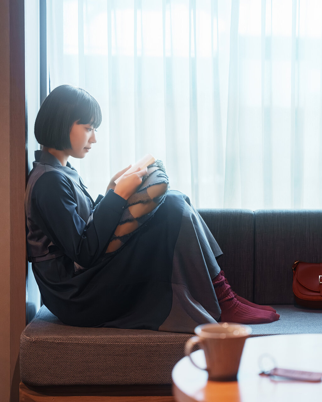 列車では編み物をしたから、部屋では少し読書タイム。くつろぎソファが嬉しいお部屋。