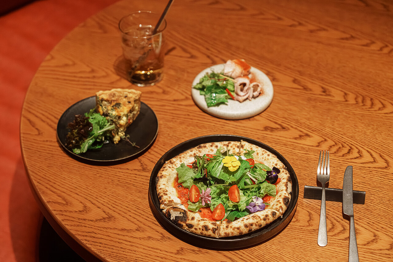 お花畑のピッツアに、キッシュに飛騨旨豚のピンチョス。