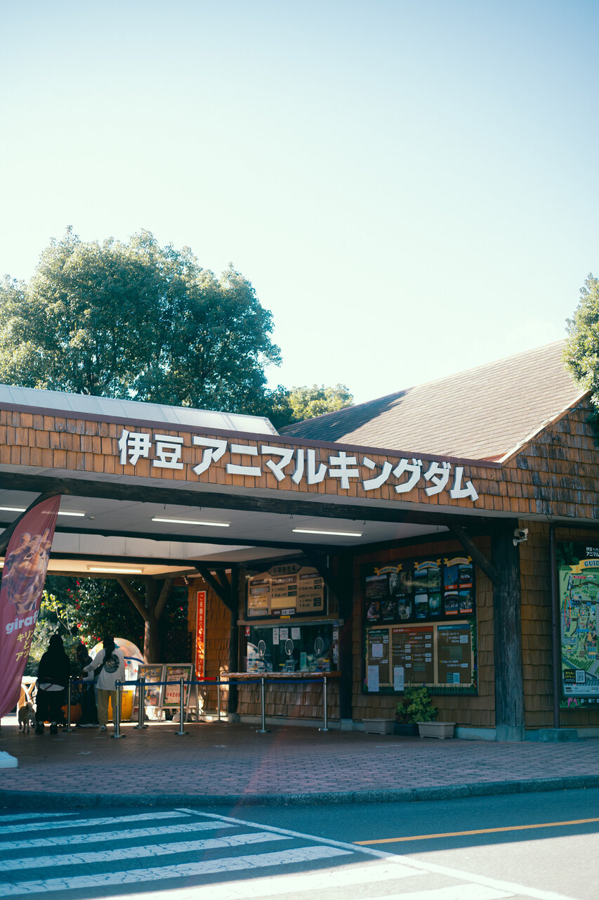 お天気にも恵まれ、今回の東伊豆旅がスタートしました。伊豆急行 伊豆稲取駅から伊豆アニマルキングダム行きバス( S02 系統)に乗り込みます。乗車時間は約10分ほど。短い移動時間の中でも、車窓には海や山、町の風景が次々と見えて、伊豆らしい空気が少しずつ漂ってきます。その瞬間、「ああ、旅が始まったんだ」と静かに実感しました。バスが伊豆アニマルキングダム方面へ進むにつれ、住宅街や商店が続く町並みから、森林のある景色に変わっていきます。終点に近づくと、最初の目的地である「伊豆アニマルキングダム」と描かれた看板が!!思わず「動物園だ!」と子どもの頃のワクワクした気持ちがよみがえり、はしゃいでしまいました。大人になっても、動物園という場所は本当に胸が高鳴ります。