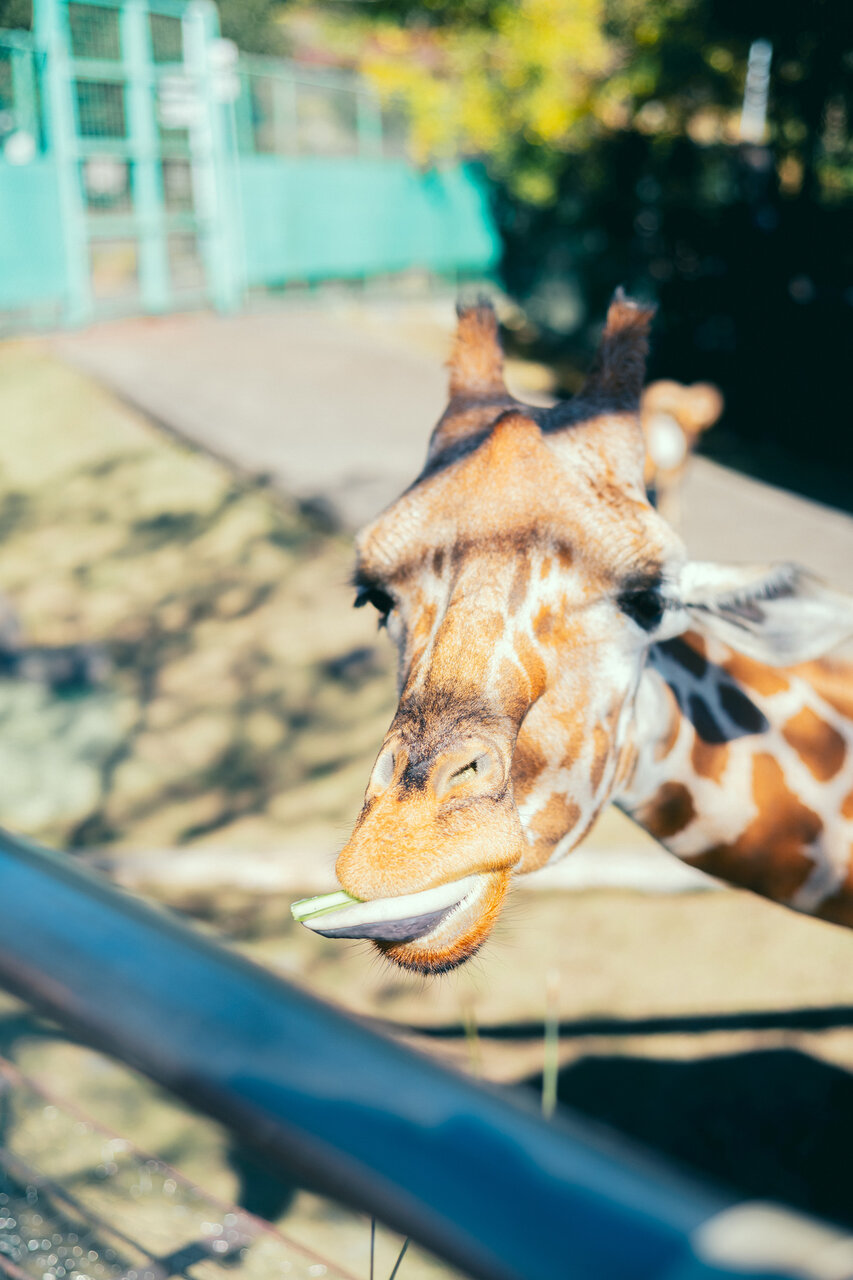 山に囲まれた自然の中で、キリンやシマウマ、サイが溶け込む姿は、“自然と共存する動物園”のようで、まるでサバンナを冒険しているかのような気分でした。草食動物たちが放し飼いになっているエリアを歩ける「ウォーキングサファリ」では、キリンやシマウマがすぐ近くに!背の高いキリンの首と青空や緑を一緒にフレームに入れると、スケール感と解放感のある1枚が撮れます。キリンが近くに来たときにアップで撮れば、非日常感のある写真が完成。
