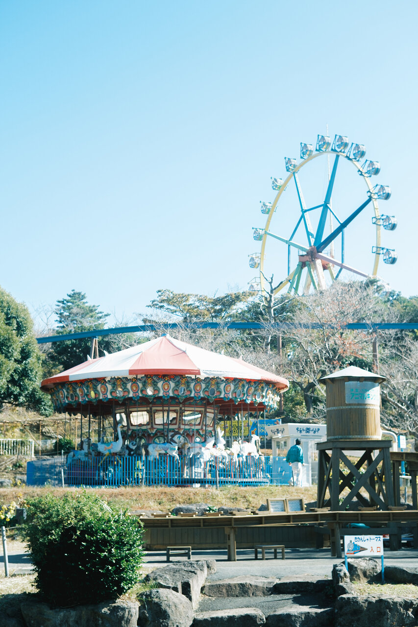 “遊び+非日常” の混在を意識して、遊園地ゾーンの観覧車やメリーゴーランドをフレームに入れ、遠景に海や山を加えると、東伊豆らしい自然とレジャーのミックスが画になります。伊豆みかんソフトを味わえば、動物園の中でも伊豆らしい思い出を楽しめます。
