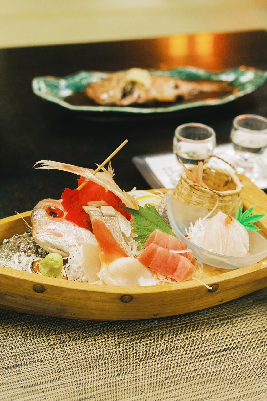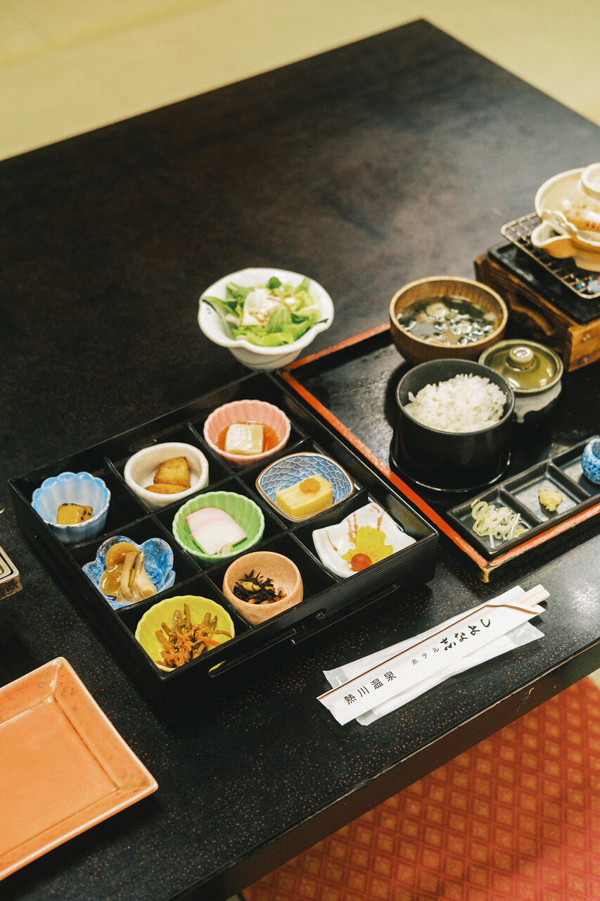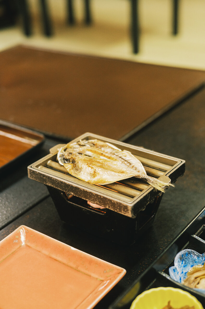 朝日をゆっくり眺めたあとは、待ちに待った朝食の時間です。和食のお膳は、海の近くならではの魚料理が中心。特にアジのたたき漬けをのせたお茶漬けは、湯気とともにふわっと香りが広がり、温かさが体にじんわりと染み渡っていきました。