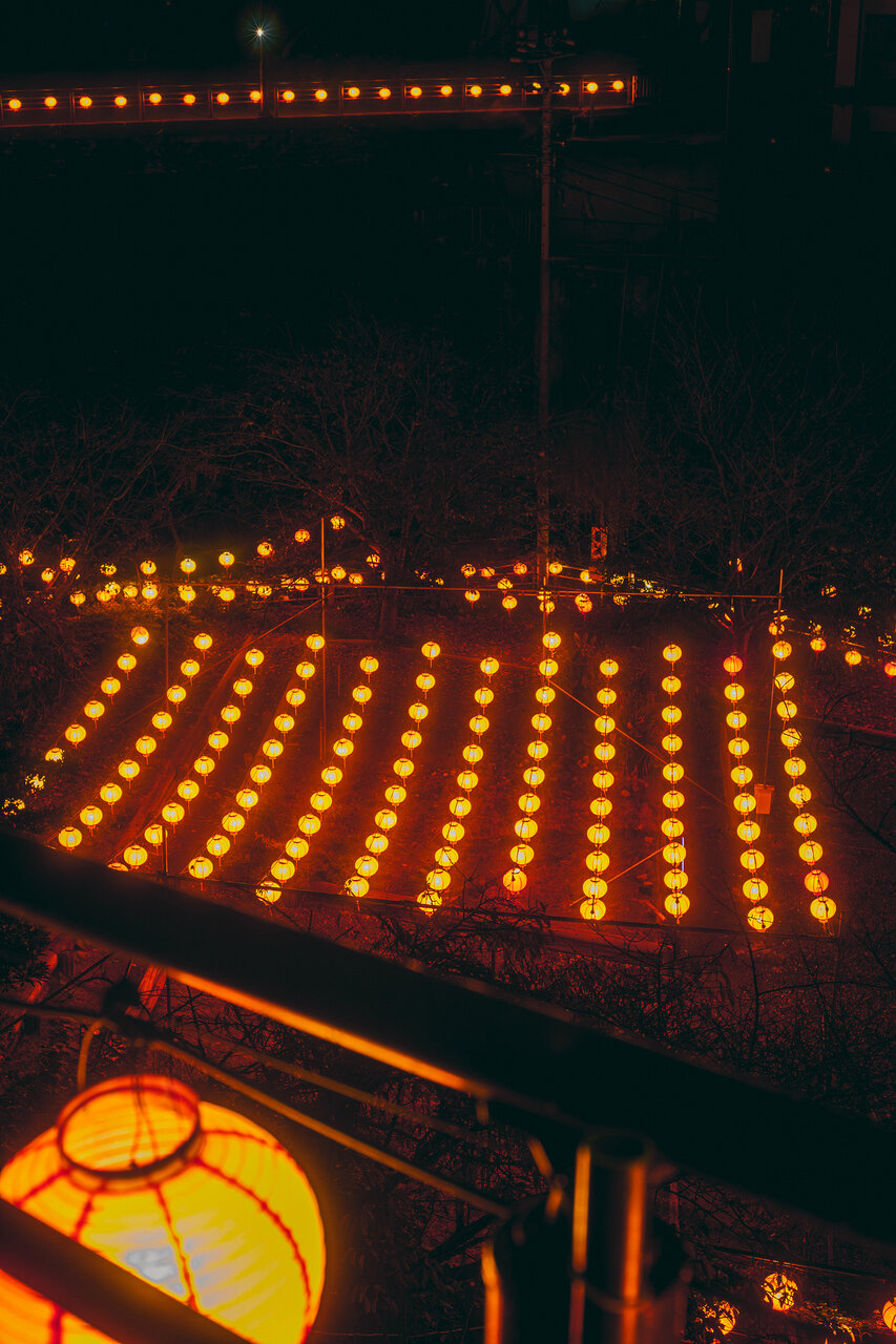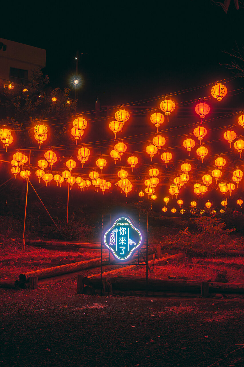 「熱川に九份が灯る」として知られる熱川台湾提灯プロジェクトでは、800個もの台湾提灯がともります。とても幻想的で、温泉街の雰囲気と、提灯の温かみのある景色がマッチして印象的でした。