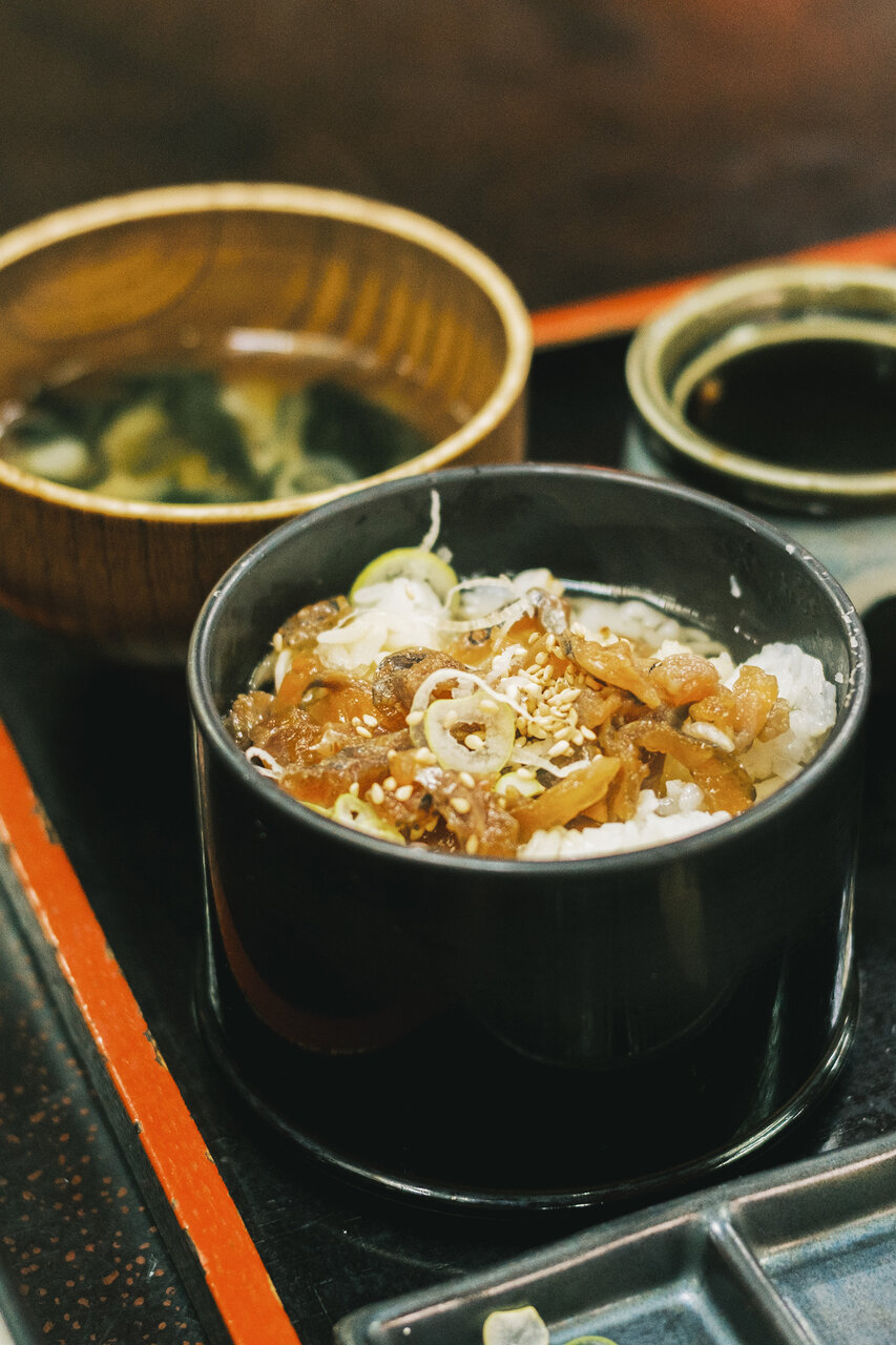 伊豆稲取駅近くにある「お食事処 絆」は、若いお母さんが一人で切り盛りする温かみのあるお店です。店内は落ち着いた雰囲気で、まるで実家に帰ってきたような安心感がありました。「ここにまた戻ってきたいと思える店にしたい」とお母さんも明るく語ってくれました。ランチにはお任せ定食を注文。和食のメインである豚肉と厚揚げの煮物や小鉢が並び、懐かしさを感じる味わいでした。お料理もとてもおいしくて、また行きたくなる、そんな居心地の良いお店でした。