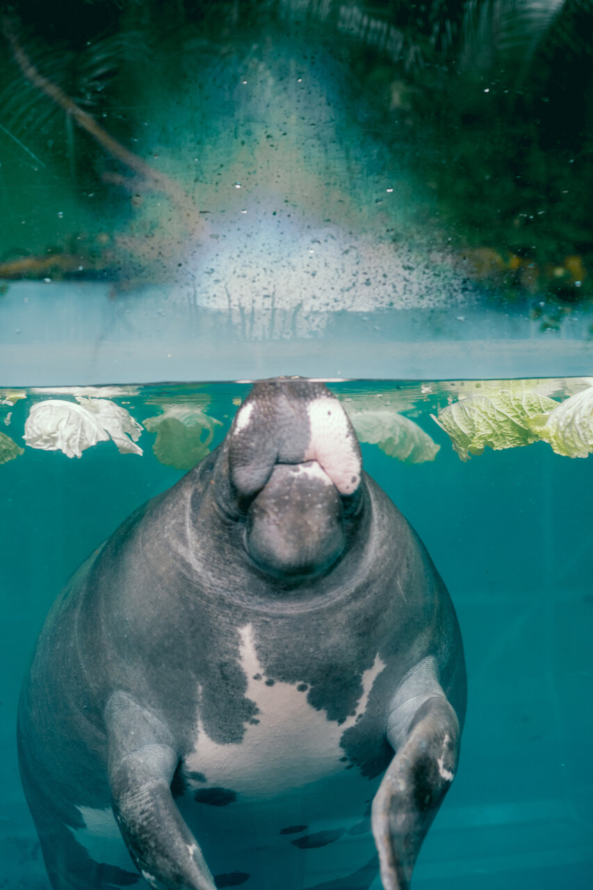 本園・植物園エリアでは、8つの温室で熱帯植物や食虫植物を展示しています。アマゾンマナティーや子ワニも観察でき、色や形が珍しい植物や食虫植物とともに間近で楽しめます。マナティーは「天使のよう」と言われており、お腹の白い模様とかわいらしい顔が印象的。
