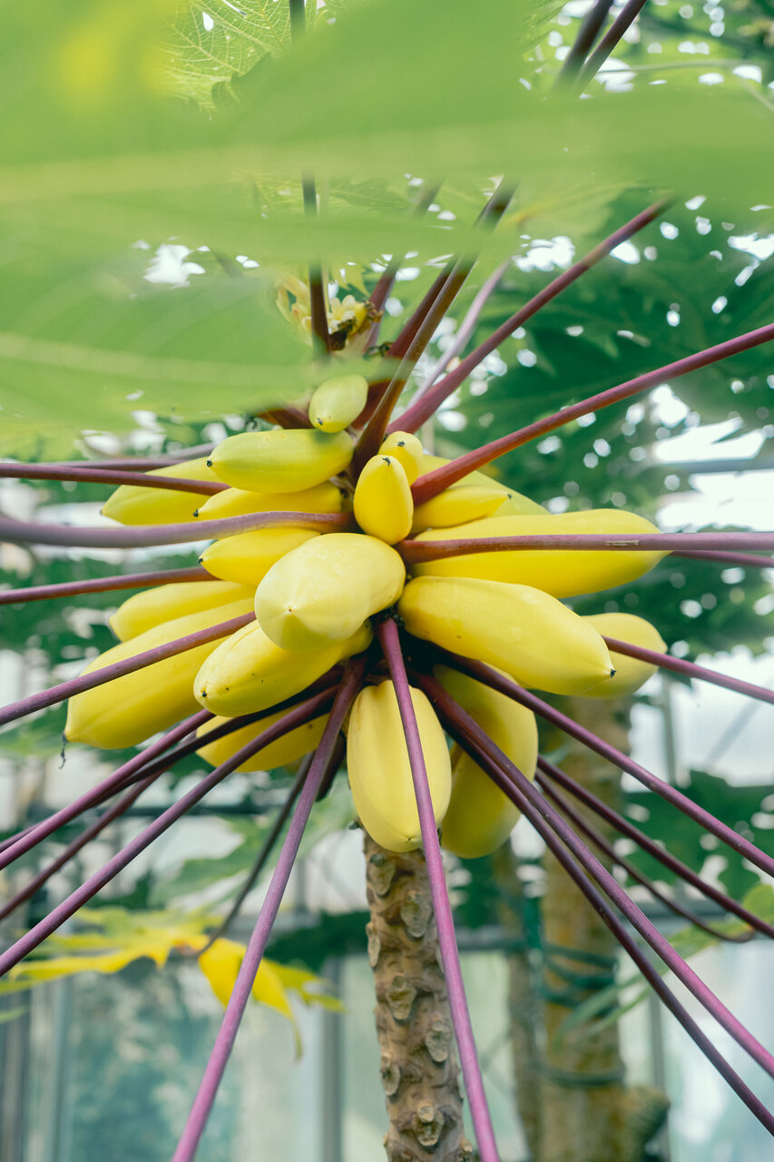 分園・果樹園へは、5分に1回ほど運行するシャトルバスで移動でき、車内では公式キャラクター【熱川ばにお】が「もうすぐ着くよ」とかわいくアナウンスしてくれます。果樹園ではバナナやドラゴンフルーツ、パパイヤ、マンゴーなど色とりどりのトロピカルフルーツが間近で見られ、植物の力強さを感じることができます。