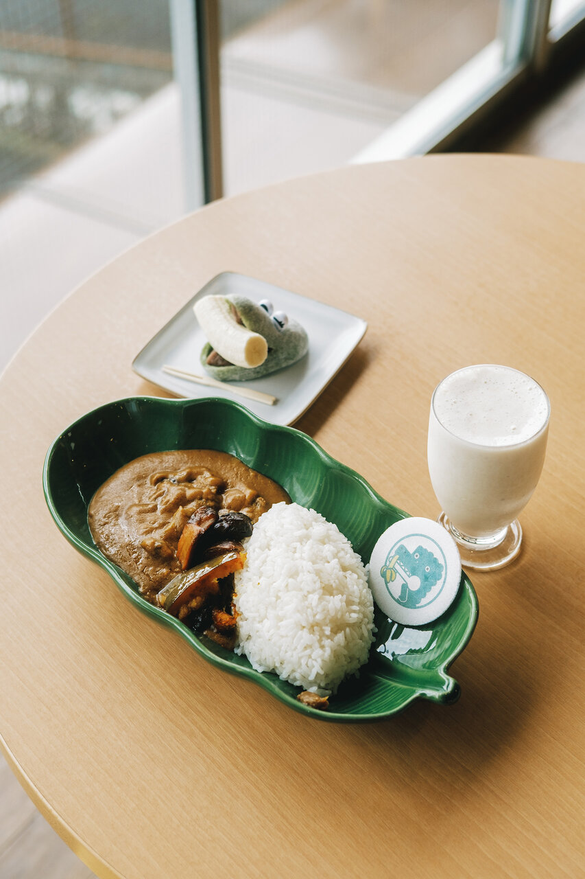 併設のフルーツパーラーでは、ジビエ肉を使ったカレーやバナナを使ったスイーツ、バナナジュースなどが味わえます。美味しくてペロリ。