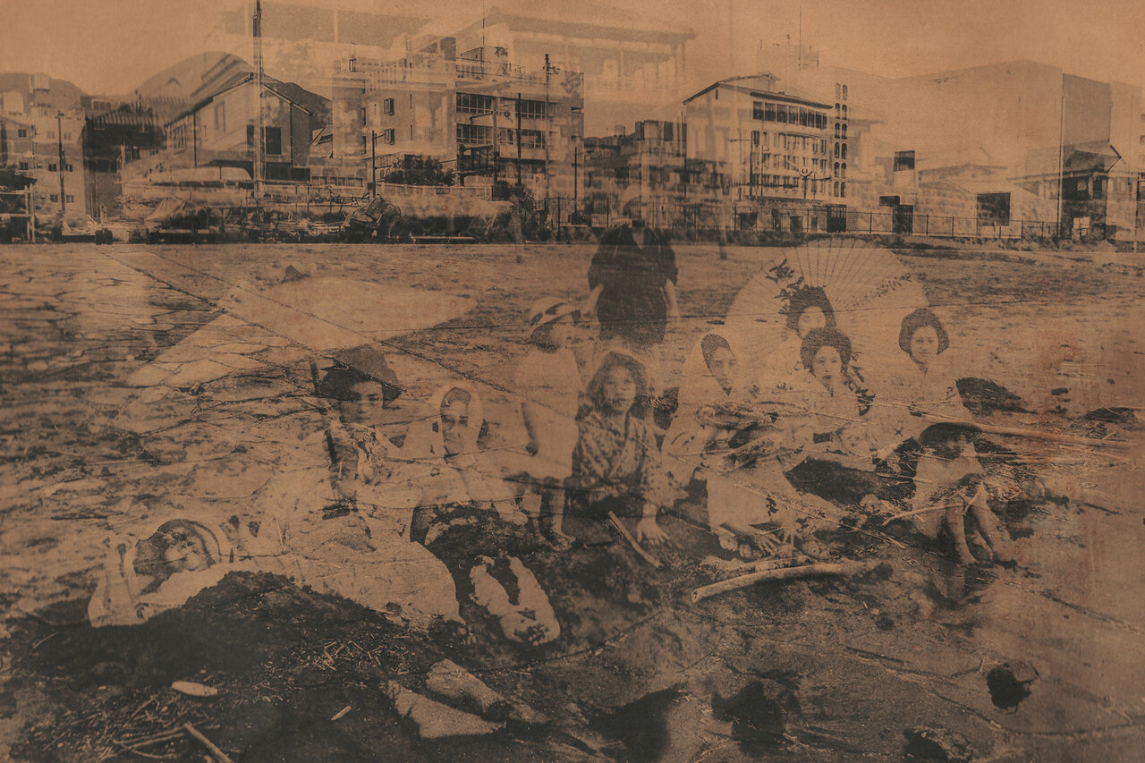 「この作品は別府だからこそ実現したと思っています。というのも当時の別府の温泉地では、絵葉書が今のInstagramみたいな役割を果たしていたらしく、他県よりも絵葉書が豊富にあったからです。旅で訪れた人が絵葉書を購入して、それを地元に帰って人に見せてまわることに宣伝効果があったみたいで。もちろん100年前の絵葉書に写っている場所を見つけるという作業はとても大変なのですが、別府市100周年に際し、絵葉書の歴史に関する本も多数出版されていたので、参考にできたことが大きかったです。そしてゼンリンという地図で有名な会社があるのですが、その会社は1948年に創業して別府の観光地図からスタートしたそうで、住民の名前や街の看板などまで書かれた非常に緻密な住宅地図があるんです。今であれば個人情報の問題になりそうなものですが、それも場所を特定するのにとても役立ちました。制作にあたり、写真や絵葉書を貸していただいたり、『温泉染』を教えていただいたりと、別府の人たちにたくさん助けていただきました。僕ひとりでは成し得なかったと思っています」。