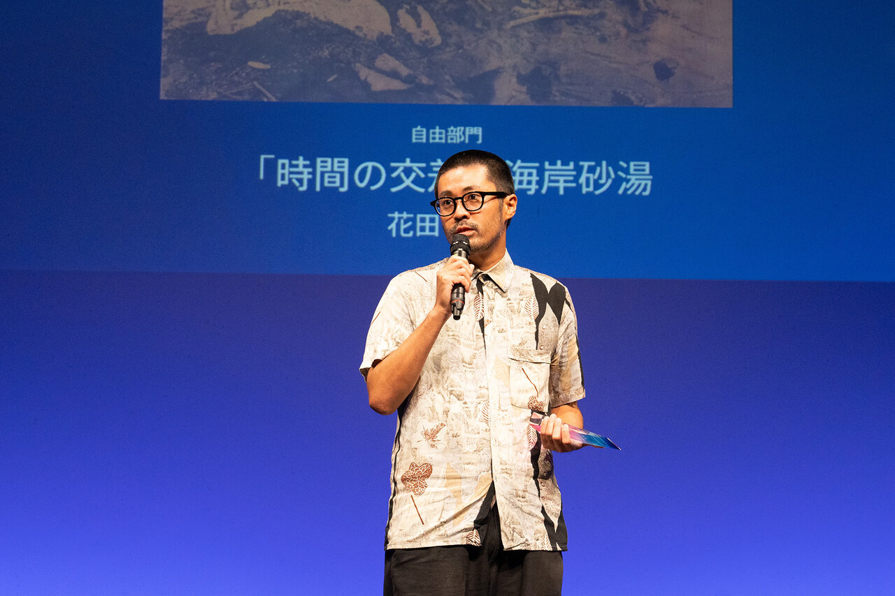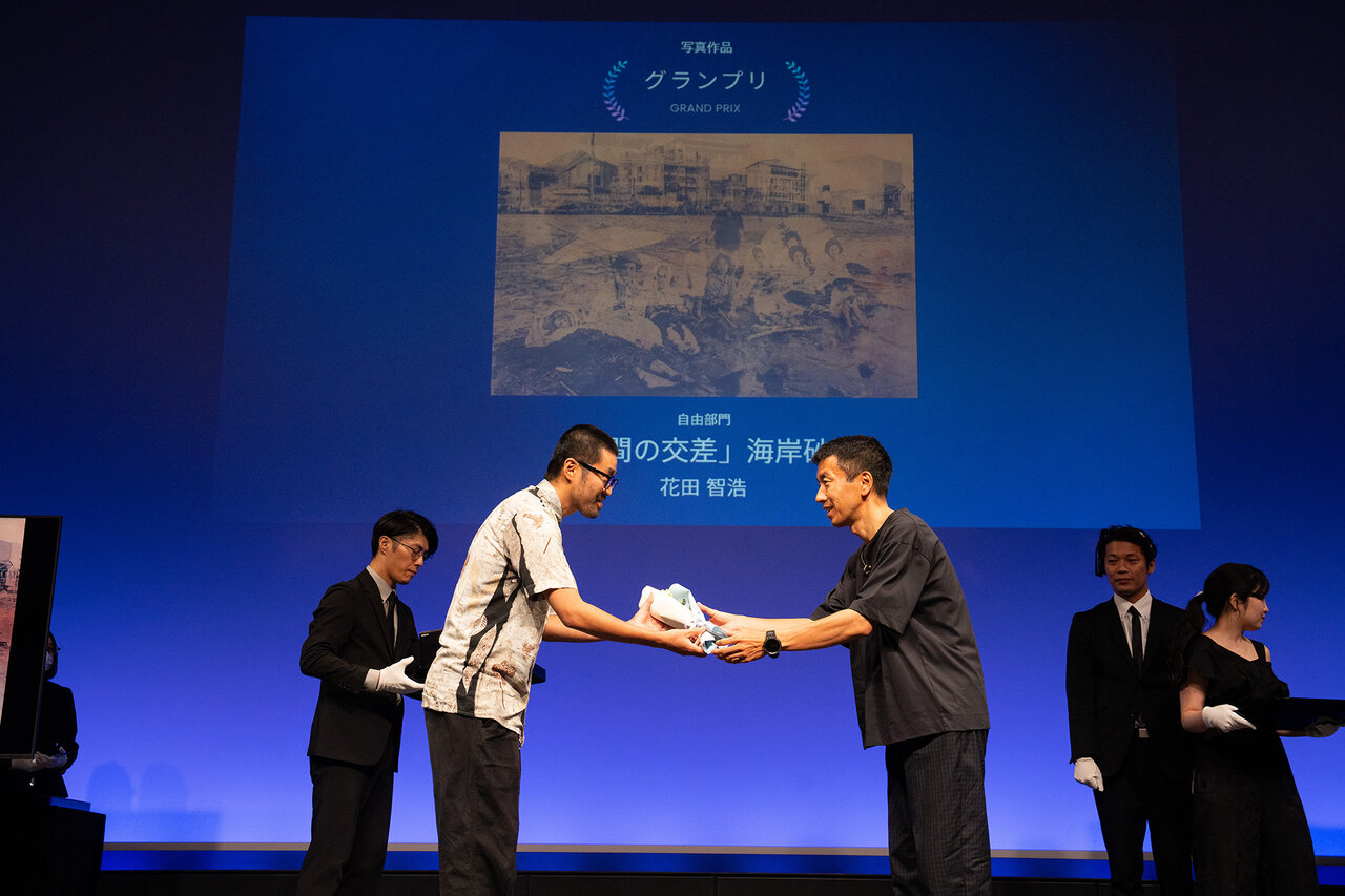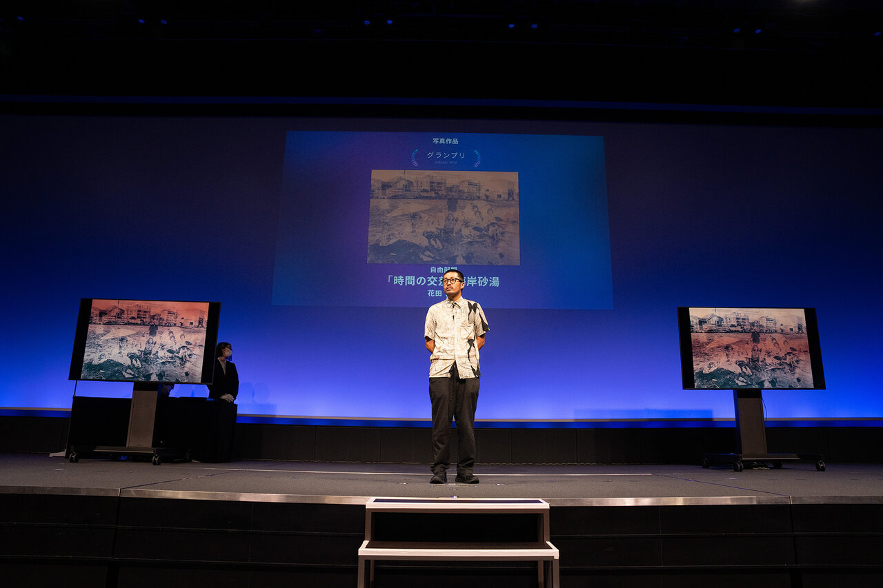 「グランプリ受賞を知ったとき、初めは実感があまりなかったです。候補に選ばれているというご連絡は事前に知らされていたので、結果が気になってはいましたが、突然電話がかかってきて受賞を知ったみたいなことではなく、メールで受賞の知らせをいただいて、しみじみ『ああ、よかったー』みたいな(笑)。賞は取りたいと思って取れるものではないですが、取れたらいいなとはもちろん思っていましたので、うれしかったですし、『やったー!』と小さくガッツポーズしてしまう感じはありました。グランプリの大きさは、表彰式の日にやっとちゃんと実感できた感じです。スピーチもあったので緊張もあり頭が真っ白になりかけました(笑)。表彰式に出てよかったなと感じたのは、ソニーさんがこのアワードにかけていらっしゃる情熱にふれられたことですね。受賞者とずっと共創していきたいといったお話をお聞きしながら、この賞でグランプリをいただくことができて本当によかったなと思いました。あと審査員の石川直樹さんとお話をする機会があったのですが、僕の経歴に興味を持ち、展示をするときは知らせてとまで言ってくださって、とてもうれしかったです」。