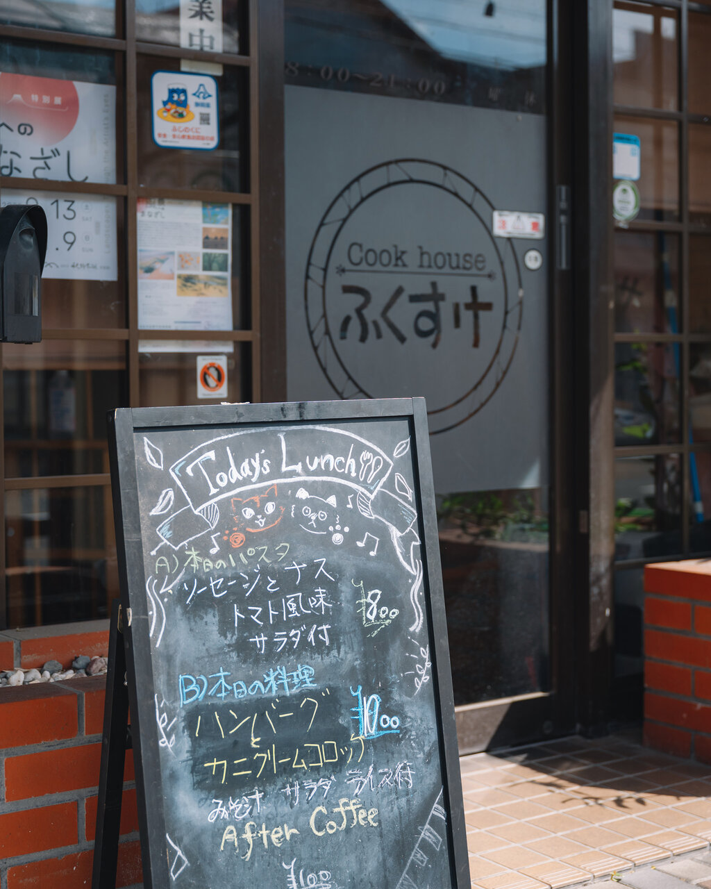 クローバー通り商店街散策は、25年続く老舗の洋食屋「クックハウスふくすけ」でのランチからスタート。