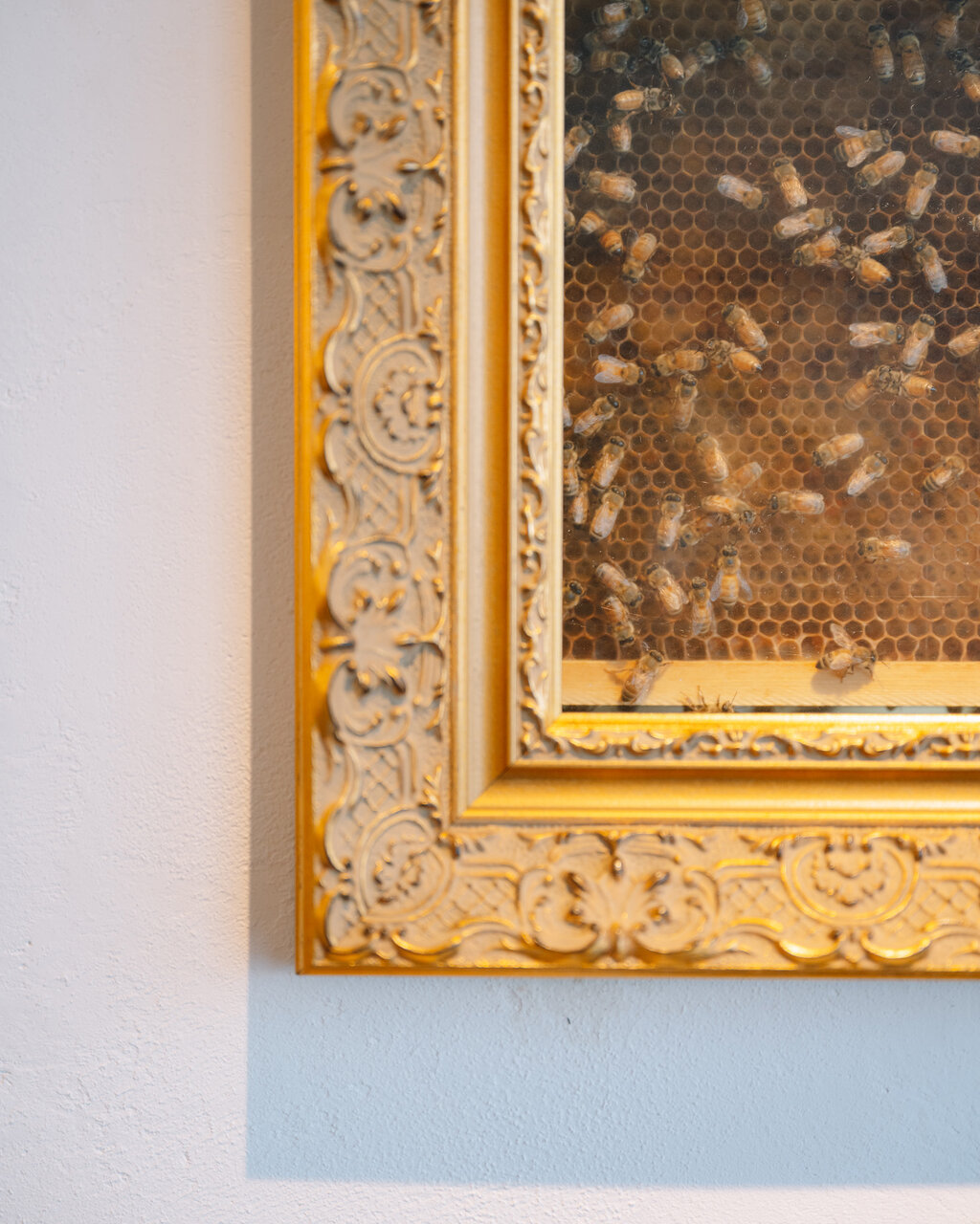 なんと、額縁の中に実際の働き蜂が。はちみついただきました、ありがとう。