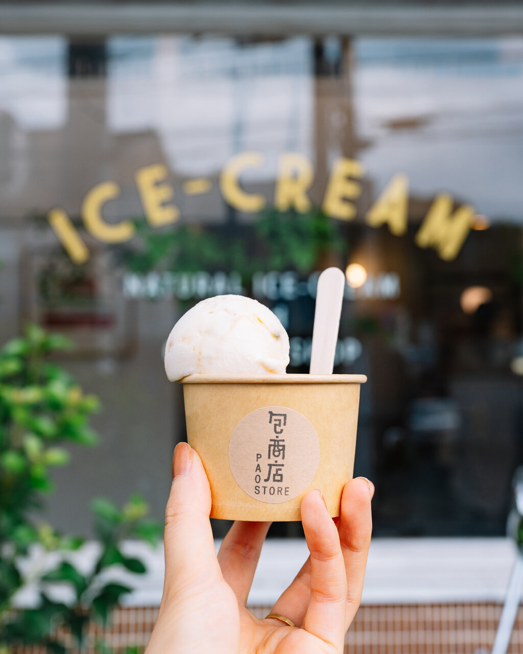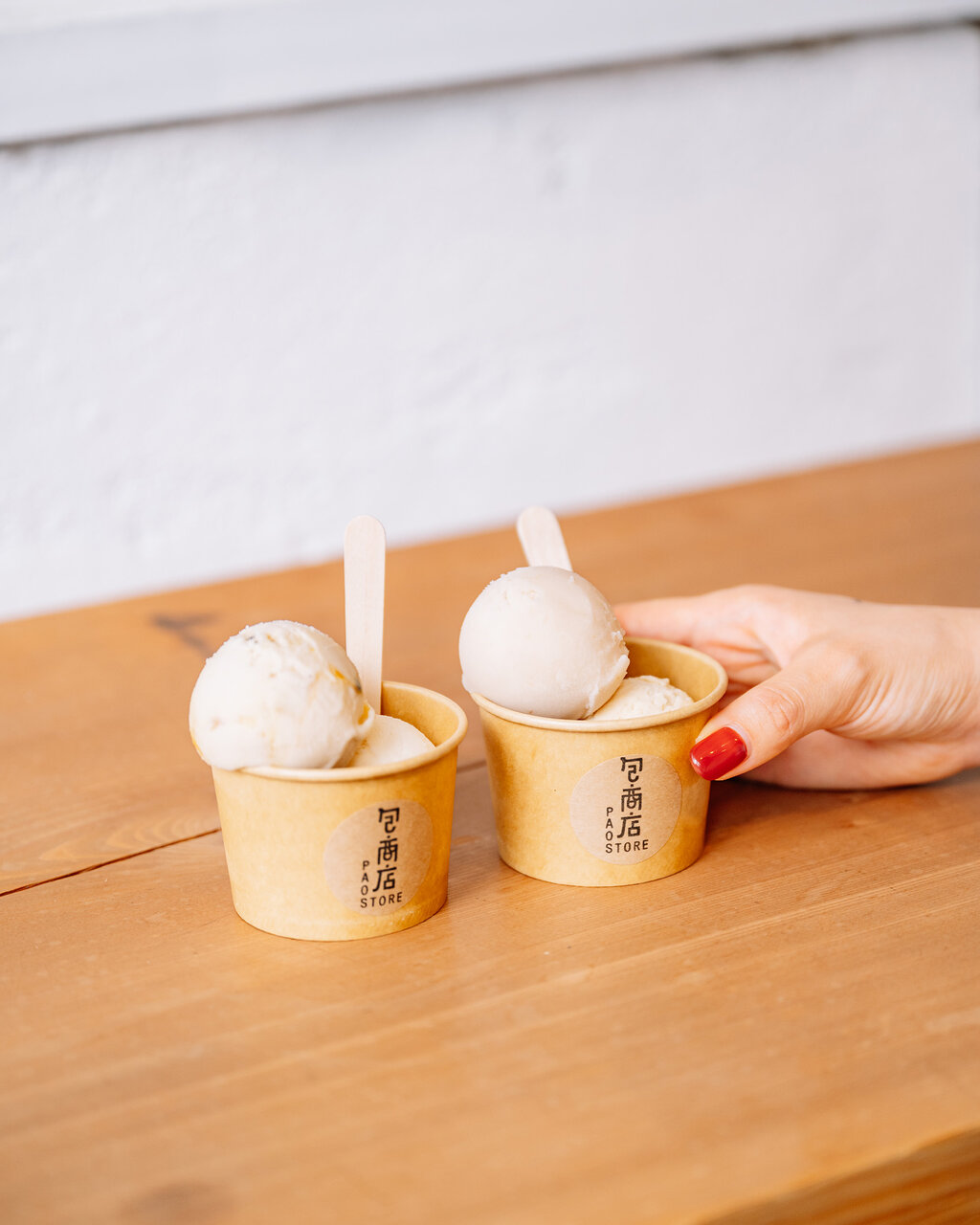 商店街を歩いていると、センスが光る一軒を発見。2021年オープンの「包商店(パオストア)」は、クラフトアイスが人気のお店。