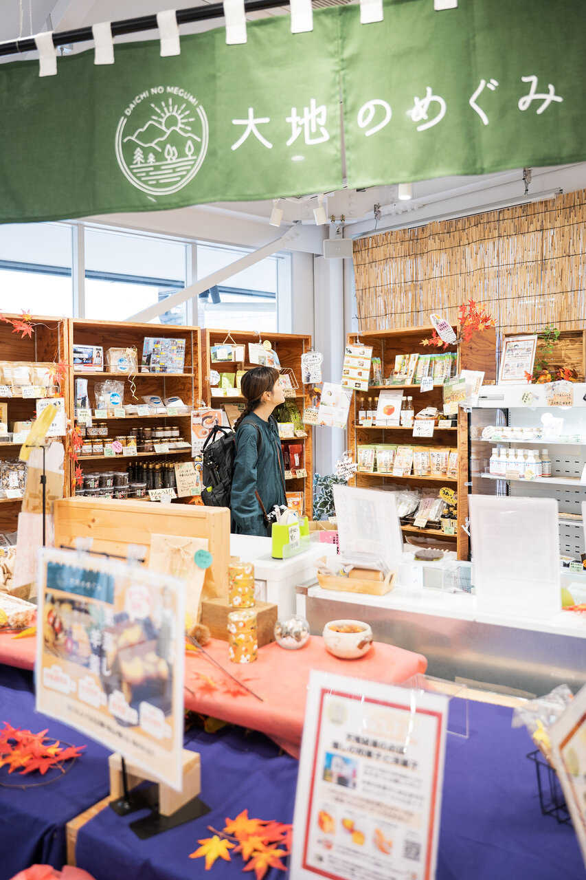 浜松の名産品が種類豊富に揃う「大地のめぐみ」コーナーは、立ち寄るべし。