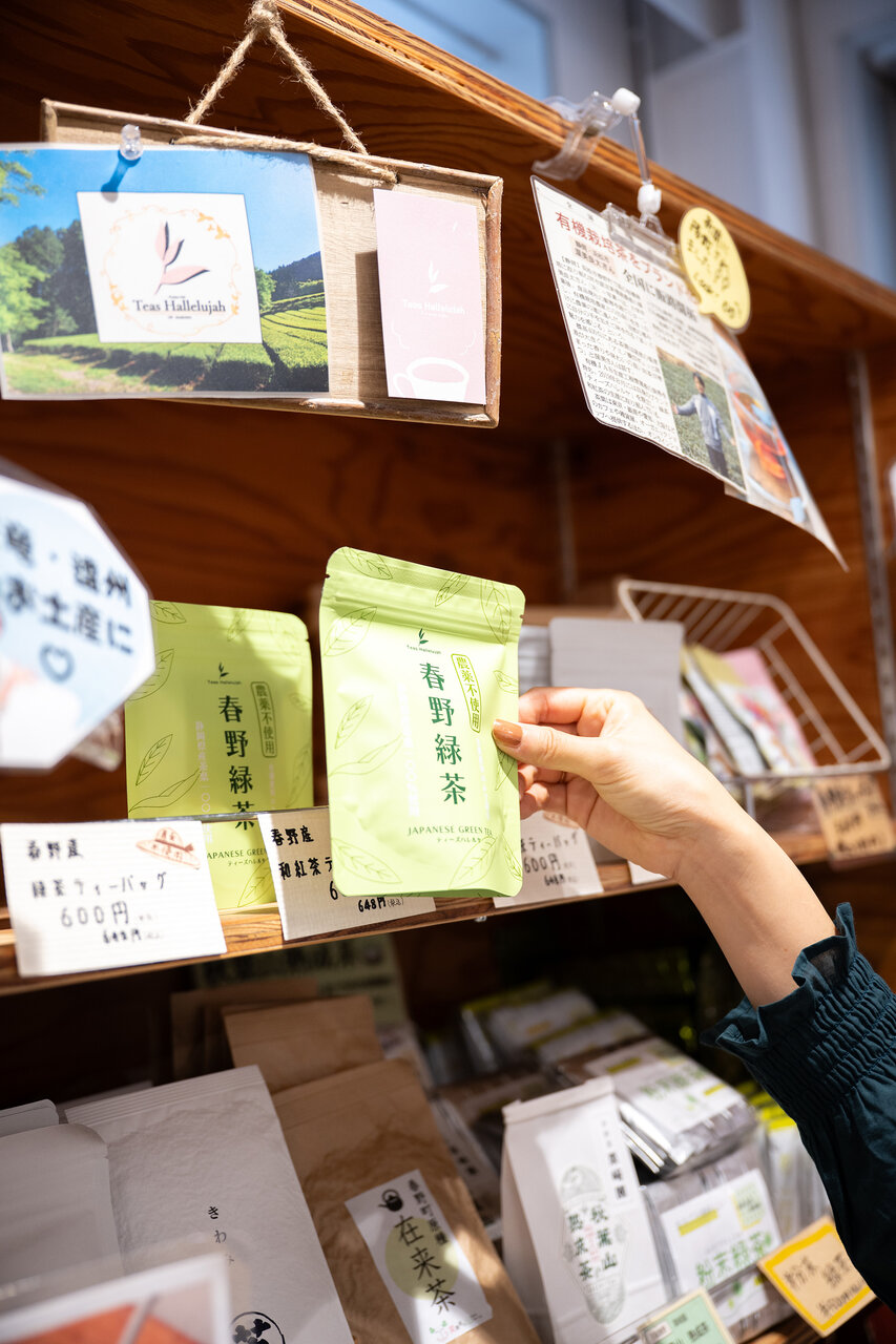 あ!包商店でいただいた春野緑茶!これでおうちでも飲める。そのままお買い物かごへ。