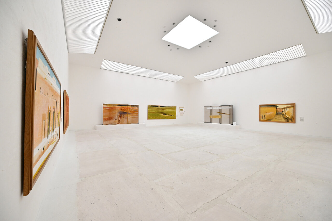 大きな絵画を引き立ててくれる漆喰の白壁。手触りも確かめたい。