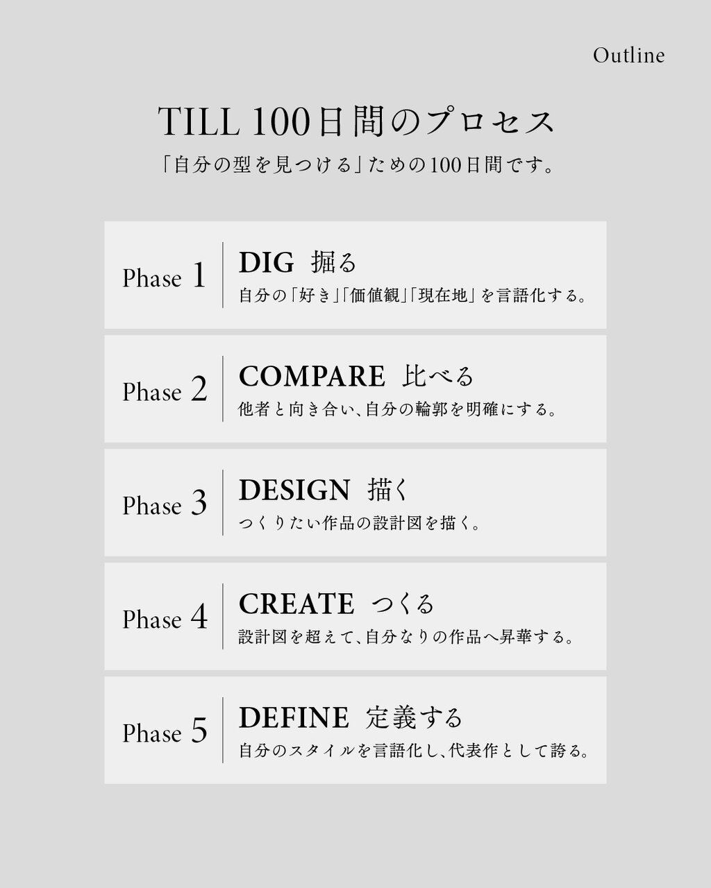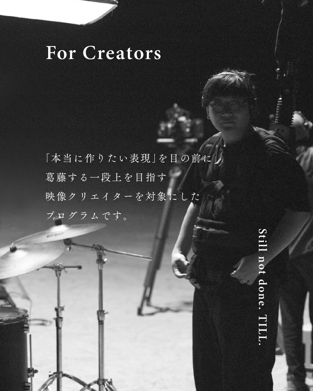 TILLは、映像クリエイターを対象に、「自分のクリエイティブコアを確立する」ことを目的とした100日間受講生と講師が伴走する実践型プログラムです。