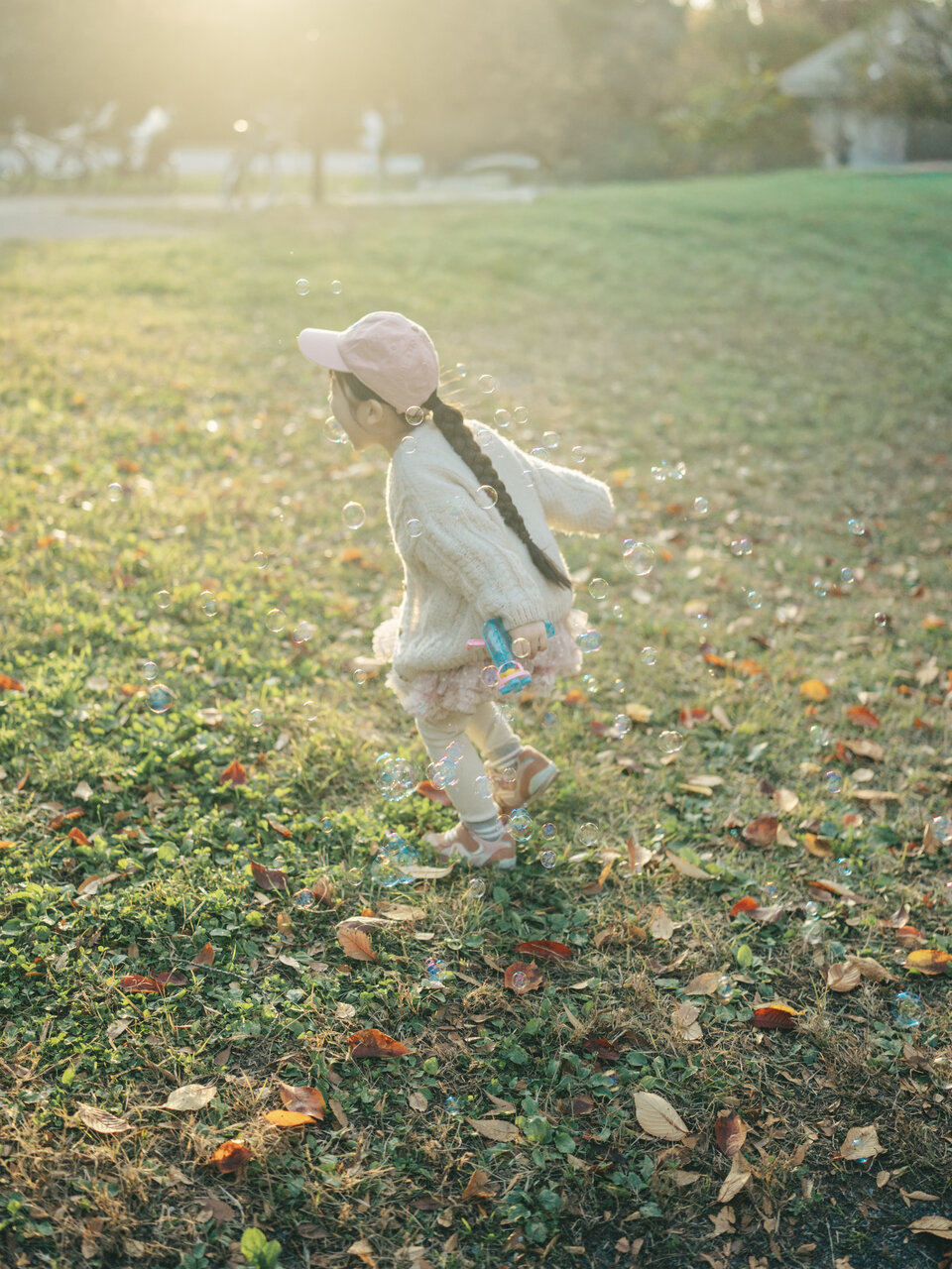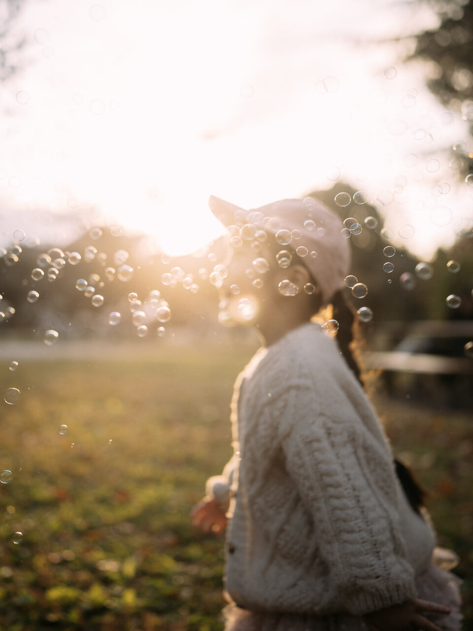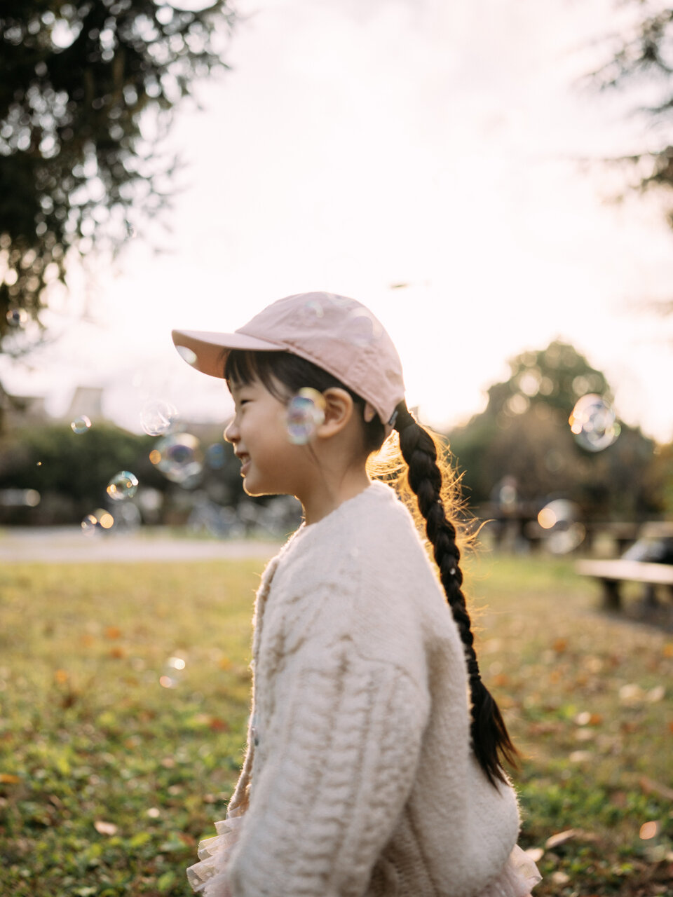 日常の中の一瞬なのに、どこか物語のような光を感じて撮った作品です。ホワイトミスト No.05を使うと、背景の夕日が大きく滲み、温度感が増しました。子どもの横顔や髪の輪郭が柔らかく溶け、シャボン玉の光も丸く優しく広がっています。ハイライトとシャドウのコントラストが抑えられ、画面全体がフィルムのような空気感で、肌やニットの質感も柔らかいトーンに変化。特に、夕日の光で入るハイライトがふわっと広がることで、写真全体が柔らかい層に包まれたように見え、子どもと光が共鳴しているような雰囲気に変わったことに感動しました。いつもの公園で起こる『日常の魔法』を、そのまま作品にでき、とても気に入っています。