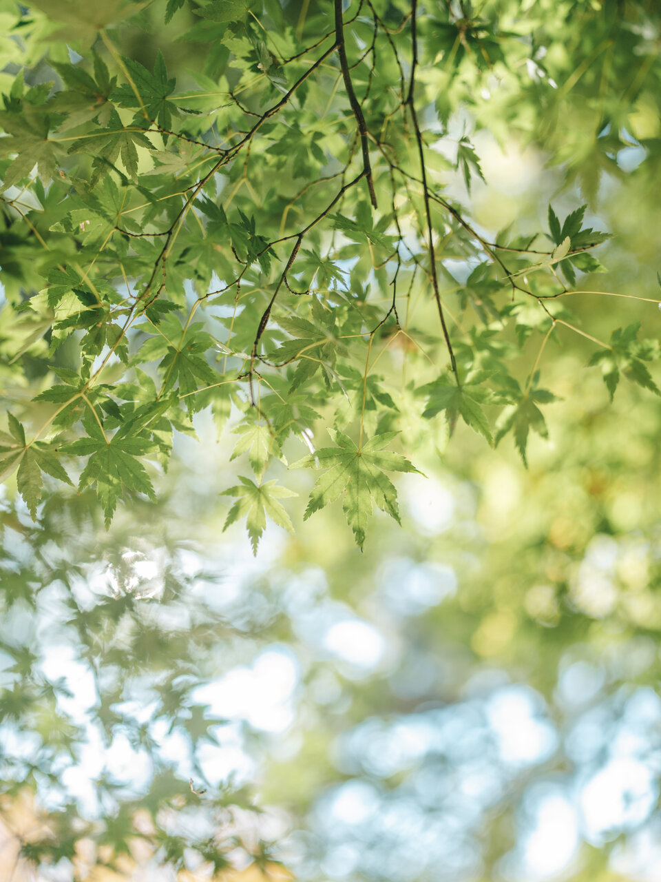 公園で、木漏れ日が綺麗に差し込んでいた時間帯に撮影したカットです。緑のもみじが太陽の光を透かし、風と一緒に揺れていた瞬間を切り取りました。フィルターを使っていない写真は、葉の輪郭がシャープで、光と影のコントラストがハッキリと出ています。デジタルのクリアさを感じられる、引き締まった描写です。そこにホワイトミスト No.05を用いると、光の粒が拡散され、ハイライトのにじみが発生。緑の階調が淡く広がり、背景のボケが溶けるような雰囲気になり、全体がフィルムのような優しいトーンになりました。まさに、空気ごと柔らかくなったような描写です。光の滲みによって葉の透け感もより引き立ち、また、背景のブルーグリーンのボケが美しくまとまっています。目で見るよりも爽やかな、夢のような緑の世界になりました。