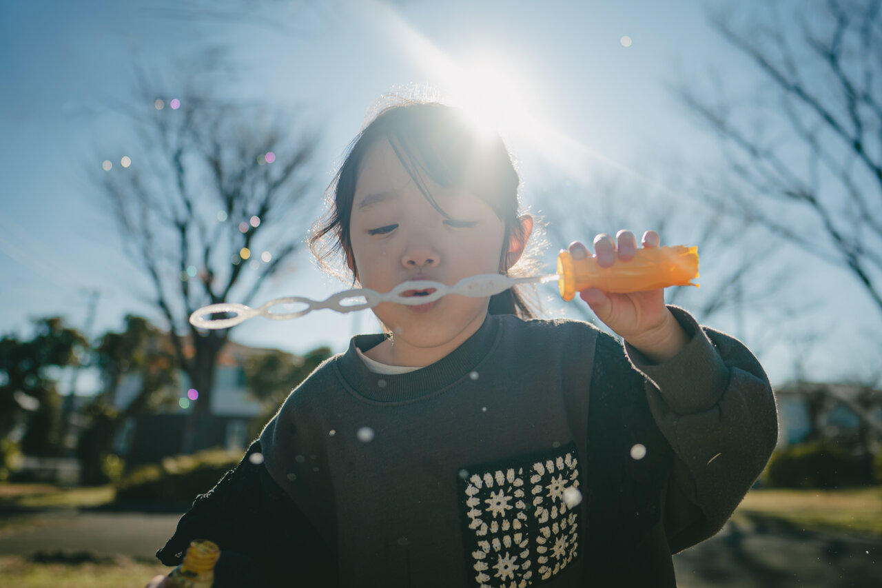 0.2mという最短撮影距離には感動しました。今まではトリミングでしか表現できなかった瞳のアップ写真も、より近く、より繊細に描写できて、感動が止まりませんでした。娘の瞳の質感やまつげ一本一本まで繊細に描写され、ハイライト部にも明るいだけでなく質感がしっかり残り撮影が楽しかったです。曇りが多く星空や夜景の撮影には行けませんでしたが、手持ち撮影の花火にもばっちりでした。