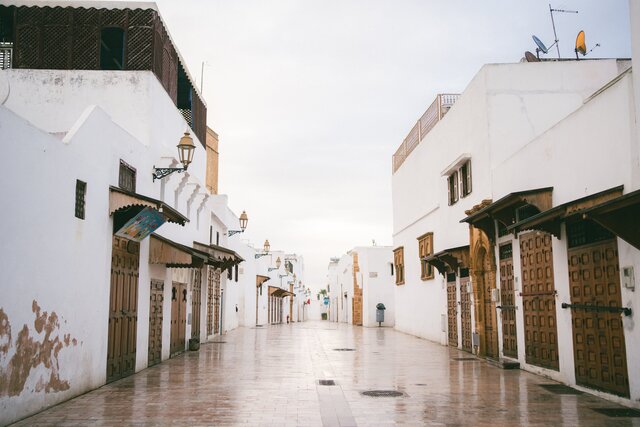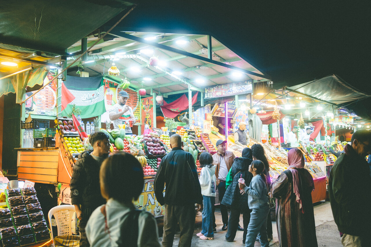 旧市街(メディナ)を歩くと、迷路のように入り組んだ路地の両側に市場(スーク)が広がり、スパイスや雑貨、織物など色鮮やかな商品が並びます。人々の呼び声や香りが交錯する空間は、歩くだけで五感を刺激される場所です。