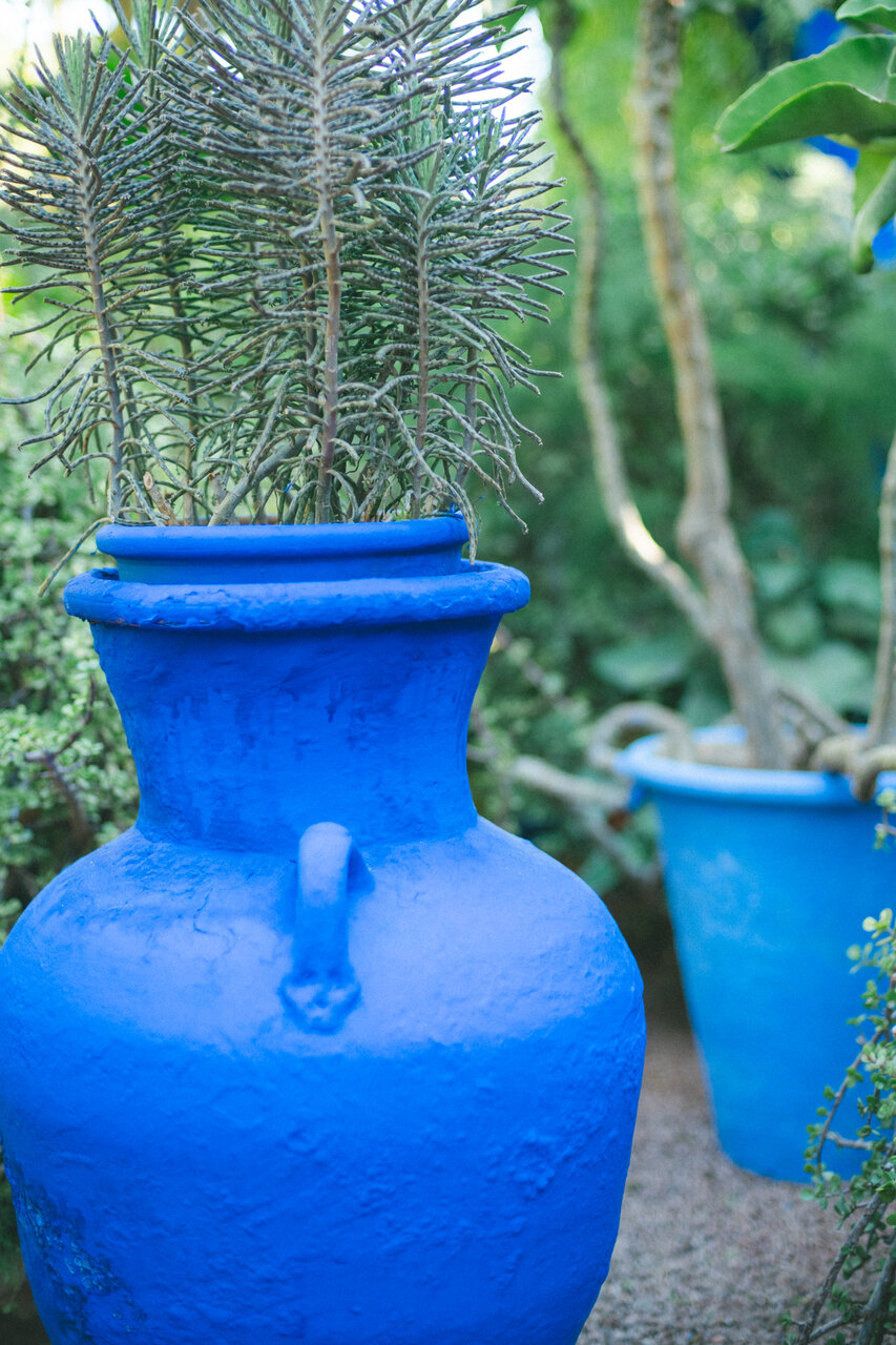マジョレルが旅のたびに集めてきた世界中の植物が並ぶ、美しい庭園でした。建物や植木鉢など、あちこちに施された“マジョレルブルー”の鮮やかな青が光を受けて際立ち、目が覚めるほどの美しさ。歩いているだけで、本当にうっとりしてしまう場所でした。