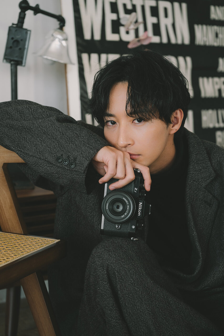 Zfの魅力は、外観がかっこいいだけではないところです。Nikonの名機FM2を思わせるクラシックなデザインを継承しながらも、写りのクオリティや操作性において、十分すぎるほど満足感があるし、使うたびに所有欲を満たしてくれる一台だと感じています。シャッタースピードやISOをダイヤルで操作する感覚は、まるでフィルムカメラで撮影しているかのようです。一枚一枚を慎重に、丁寧に撮ろうという気持ちに自然となれます。写真にしっかり向き合える、その時間そのものがとても贅沢だと思います。また、切り換えレバー1つでモノクローム撮影に切り換えられる点も、自分にとっては大きな魅力です。今ではZfは、親友のような安心感を与えてくれる存在といえます。俳優としてZfに触れるのは今回が初めてでしたが、構えたときの高揚感、手にフィットする感触はいつもと同じで、自然と気持ちが落ち着きました。その小さな安心感は、どこかで芝居に影響を与えていたかもしれません。
