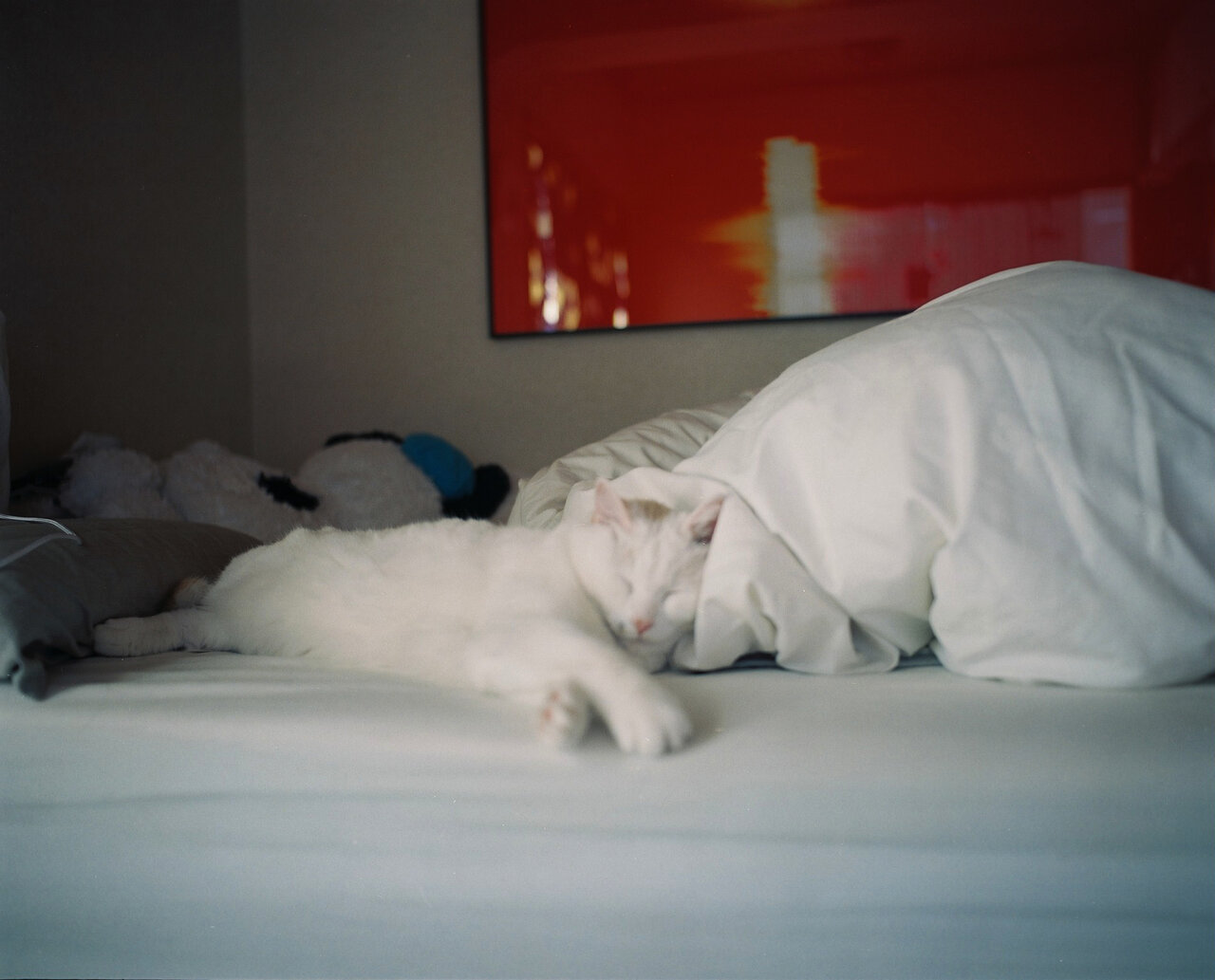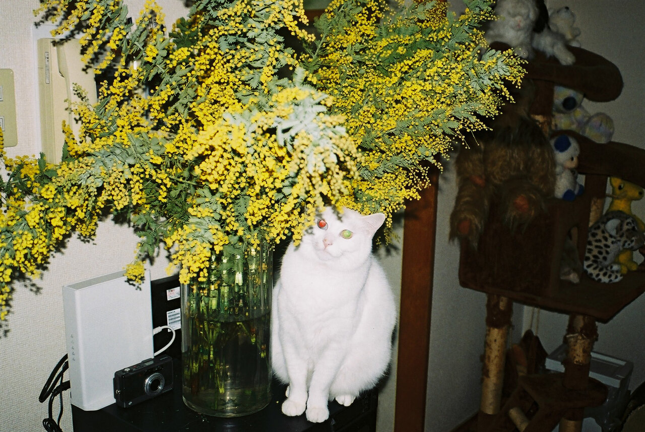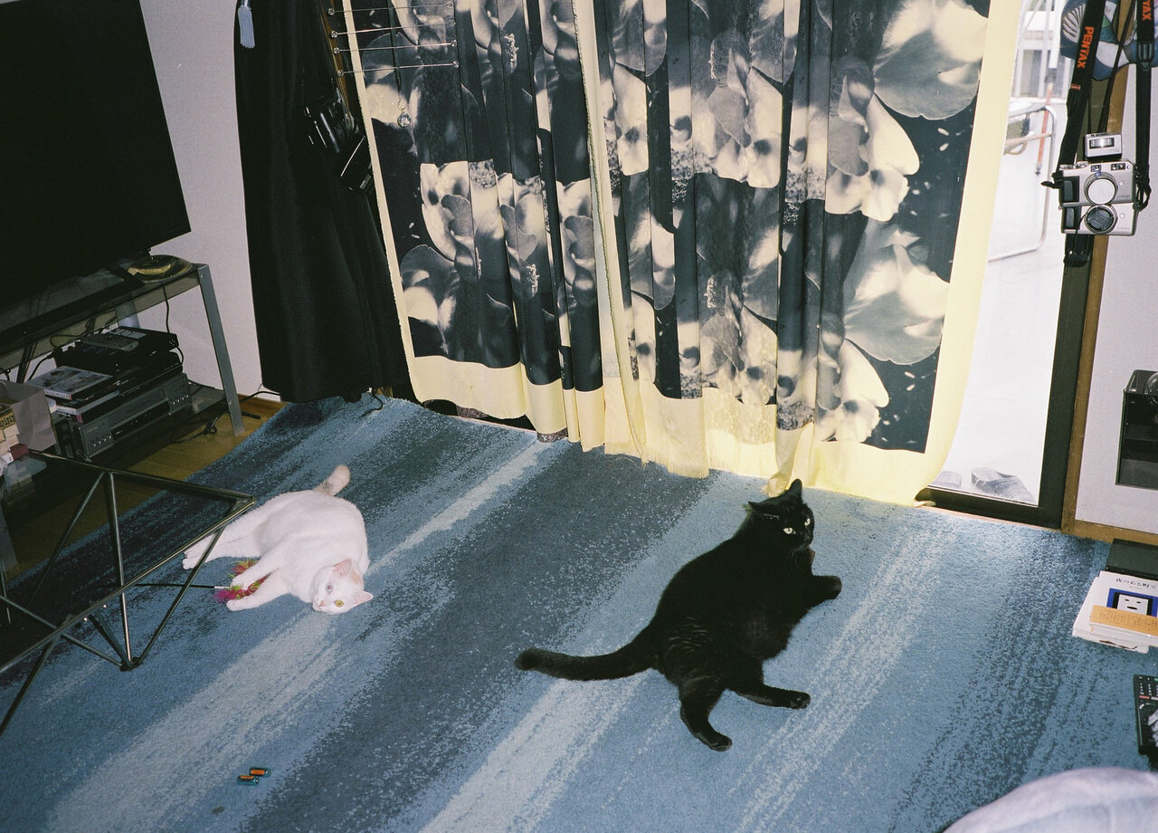 嶋田さん(229GALLERY ディレクター)は多忙の中仕事終わりに何度か家に来てくれて話をしました。うちに来ると結局、猫を愛でる嶋田さんを見るというイベントが毎回発生してたので彼が猫と花をモチーフとして選んだのは何だか自然な流れな気がします。今まで花や猫を随分撮ってきたけどそれをテーマとしたことはなかった。ただ好きなものを撮った素直な写真です。そういうものをやっと真っ直ぐ出せるようになったのかな、俺自身何だか楽しみです。