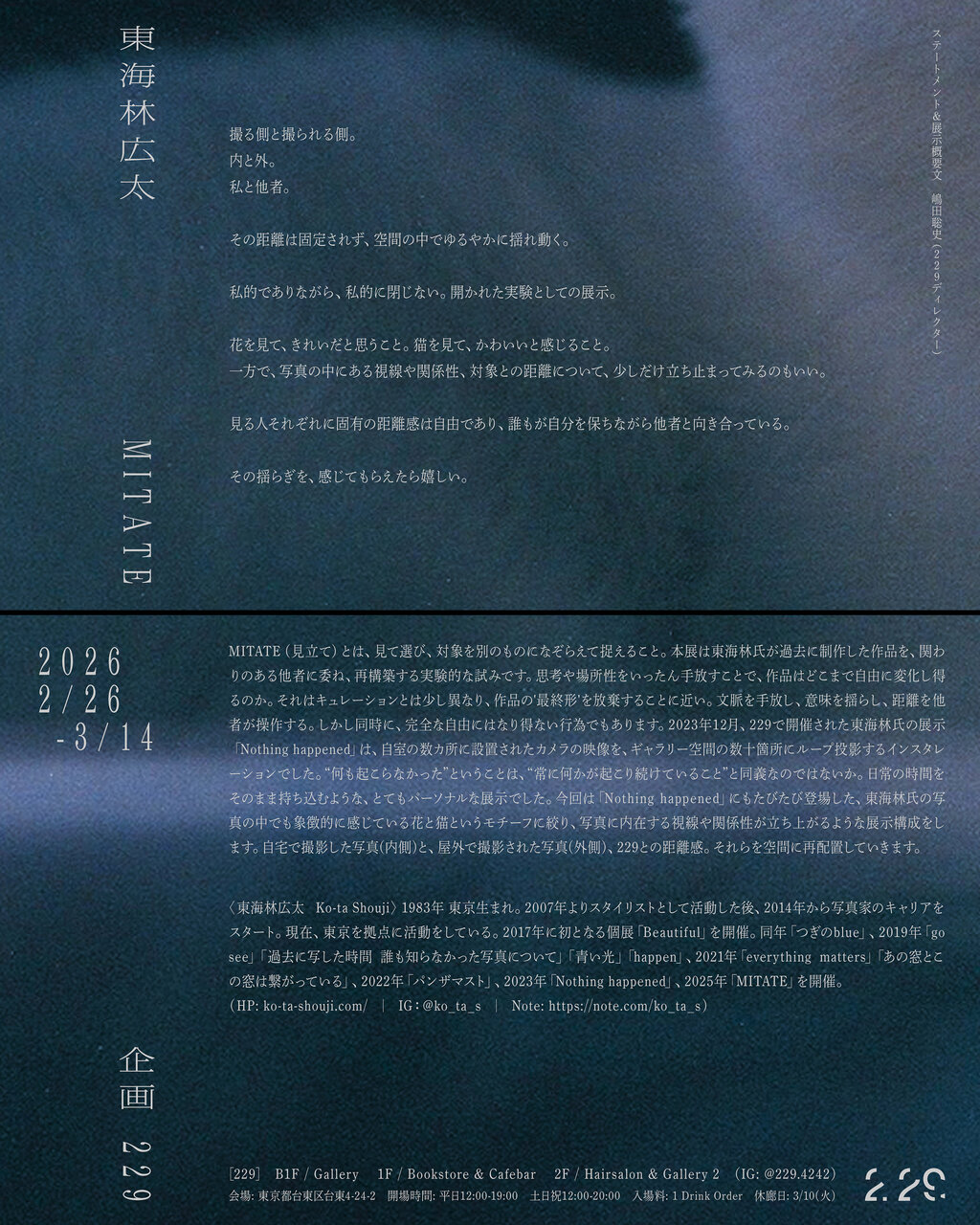── 東海林広太 写真展「MITATE」プレスリリースより