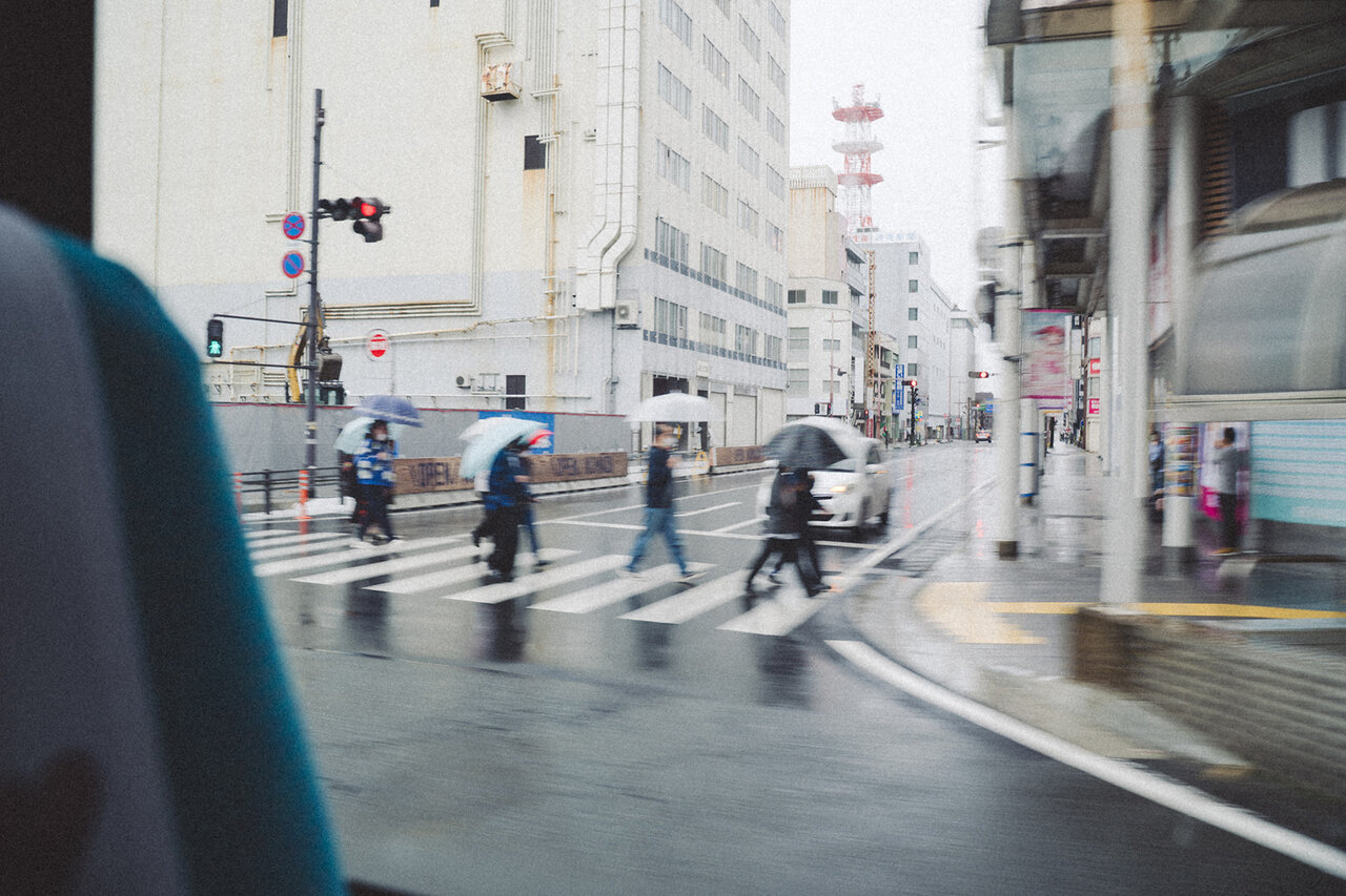 旅の初日は、久々の雨模様でした。私は雨の日も好きです。傘に当たる雨音や色とりどりの傘をさす人を眺めていると、晴れの日とは少し違う、雨の日にしか見られない景色に気づくことができるからです。