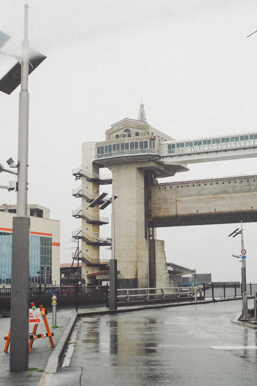 乗車時間は約10分ほど。車窓から港の風景を眺めているうちに、あっという間に目的地の最寄りバス停「沼津港」へ到着しました。バス停からは徒歩で約5分ほど。海の方へ歩いていくと、大きな水門「びゅうお」が姿を現します。