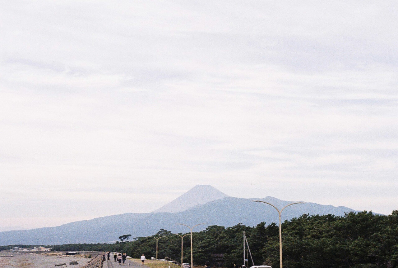 ランチの前に伊豆・三津シーパラダイスを出て少し歩いてみることにしました。すると、富士山と海が見える海岸、三津海水浴場を見つけました。せっかくなので、海岸沿いをゆっくりお散歩してみます。