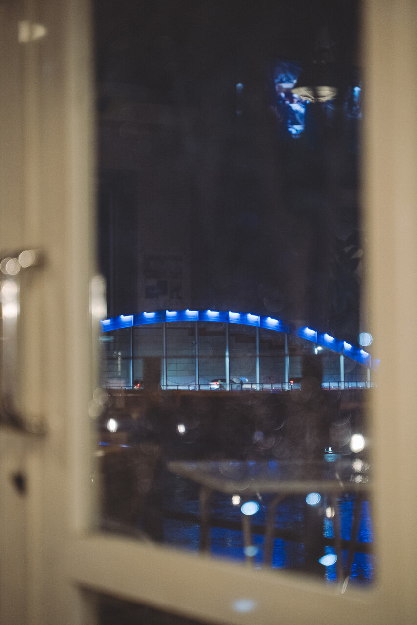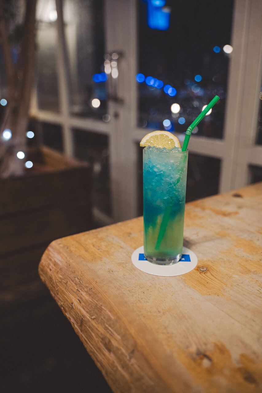 - 夜の狩野川を眺めながら「THE BLUE WATER」で夕食