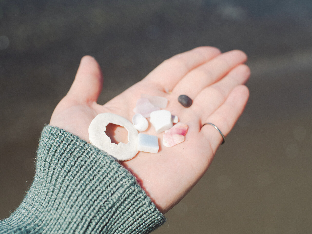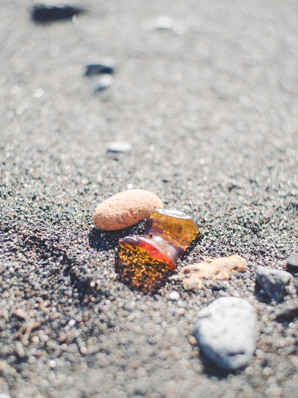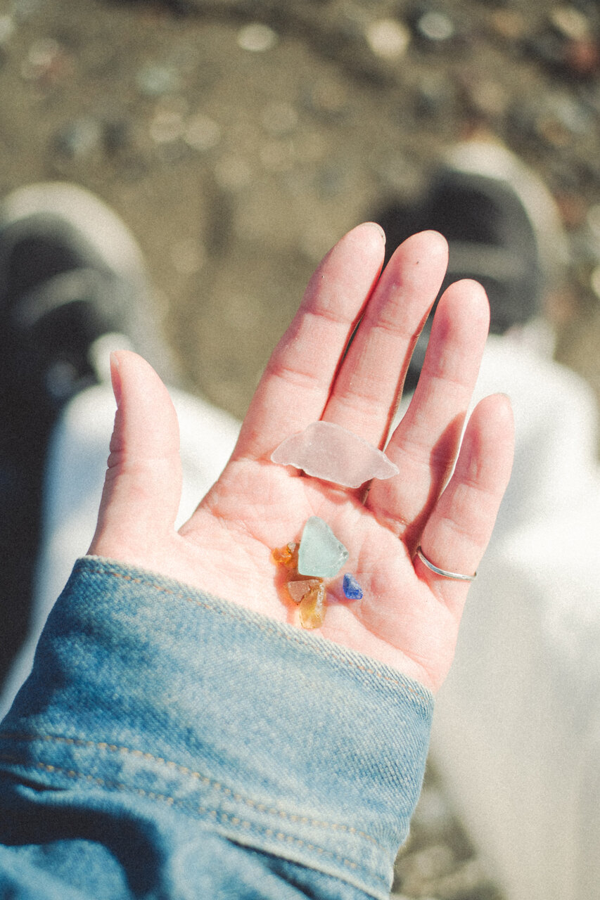 拾ったシーグラスを太陽の光にかざしてみると、ガラス越しにやわらかな光が透けてとても綺麗でした。口ずさむのは「上を向いて歩こう」。上を向いて歩こうという歌なのに、私は幸せな気持ちでずっと下を向いてシーグラスを探しています。そんなことがなんだか面白くて、思わず笑ってしまいました。
