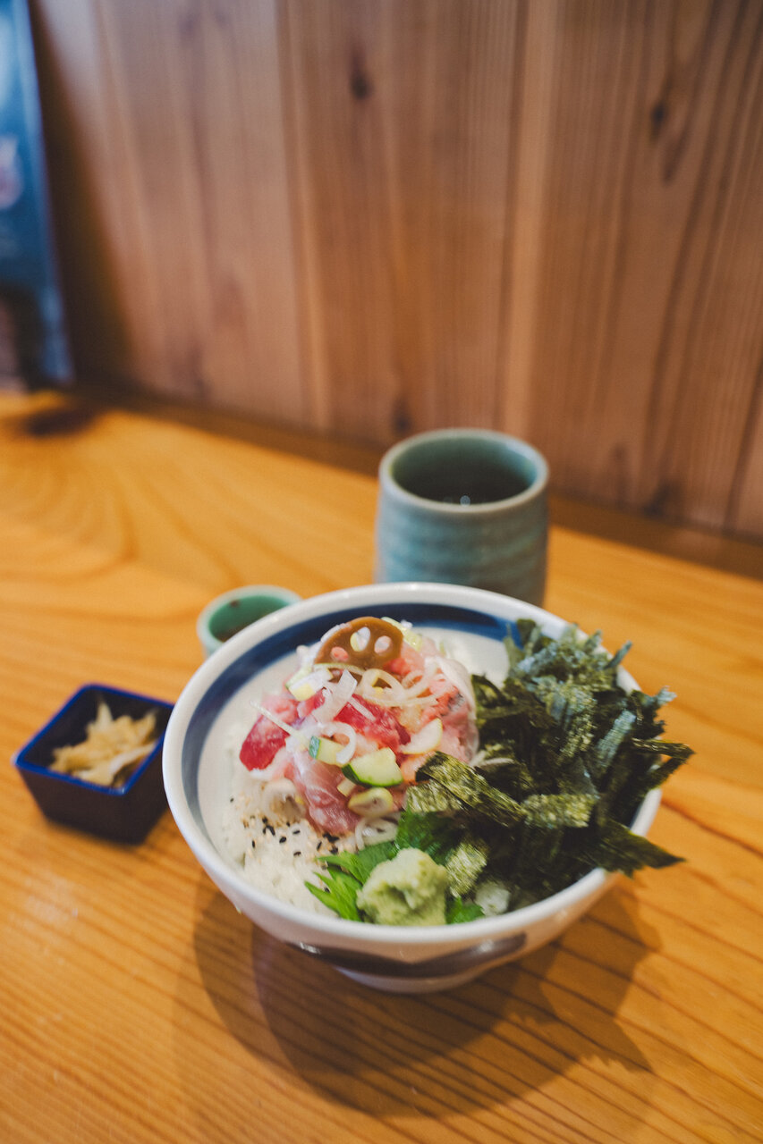 笑顔の素敵な店員さんに誘われ、活気のある店内へ。なんと「五鉄」さんの海鮮丼は、海鮮丼とまご茶漬けのふたつを楽しめるのです!お店の前の「一度で二度美味しい!」という言葉にも誘われました。