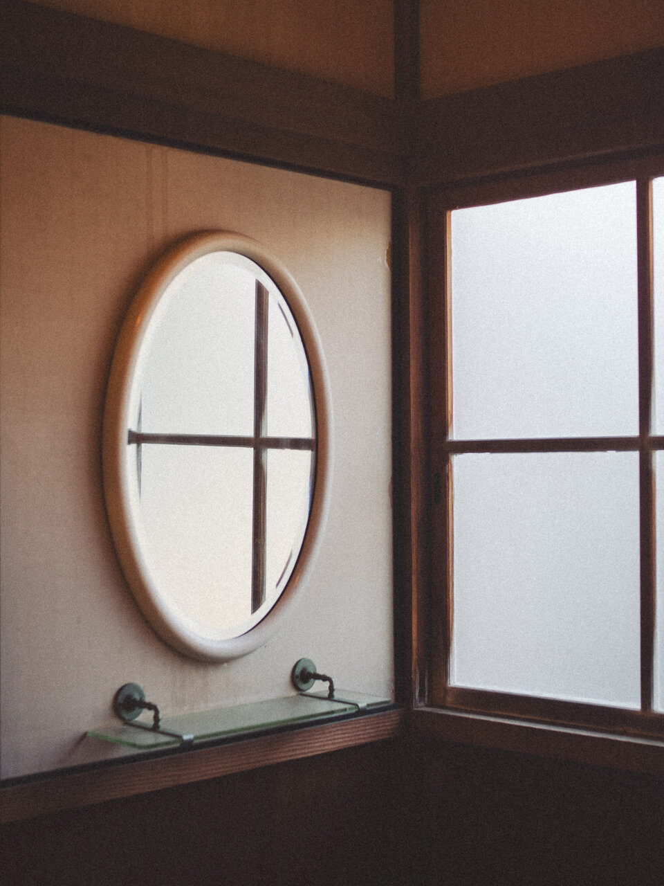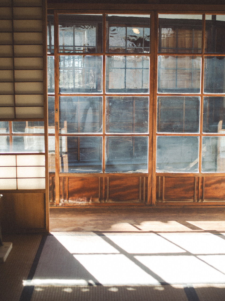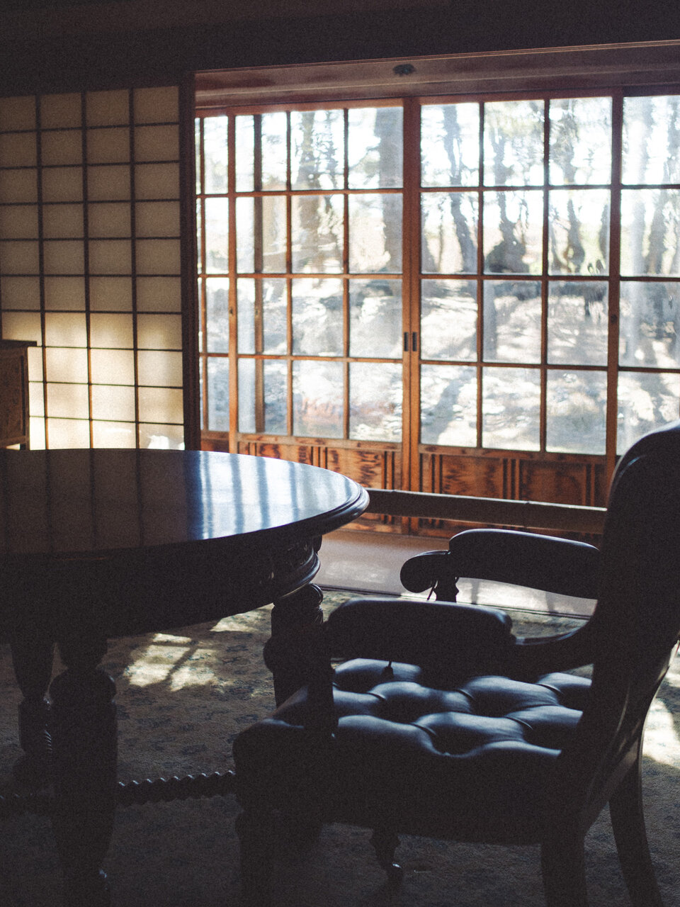 訪れたのは、春の気配を感じはじめる穏やかな午後。大きな窓から差し込む光が床や壁にやわらかく広がり、窓ガラスに映る光はまるで揺れる水面のよう。静かな空間に、美しい影を落としていました。建物の中はとても静かで、時間がゆっくりと流れているように感じられます。かつてここで昭和天皇が過ごされた時間に思いを馳せながら、歴史ある空間をゆっくりと歩きました。季節によって差し込む光の表情も変わり、訪れる日や時間によってまた違った景色が見られるのかもしれません。