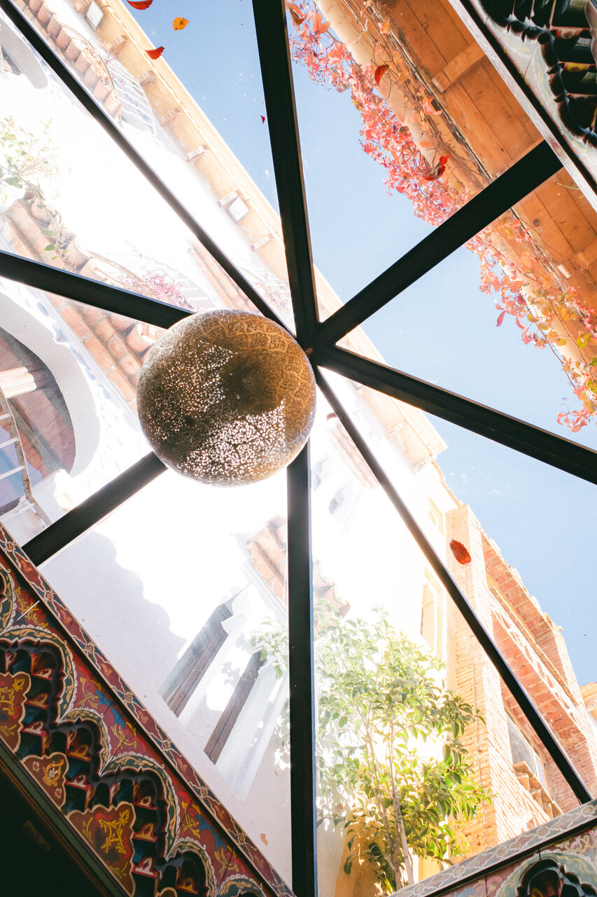 たくさんの植物や花に囲まれ、立地が高いため日当たりも抜群。照明や天井など細部までモロッコらしいデザインが施されていて、思わずうっとりしました。かわいらしさの中に伝統的な雰囲気と静けさがあり、とても居心地の良い空間。ベランダから眺めるシャウエンの街並みも本当に美しかったです。