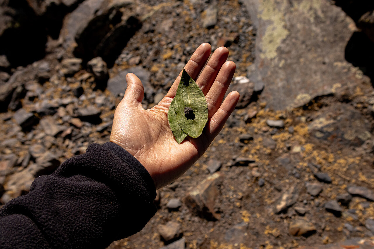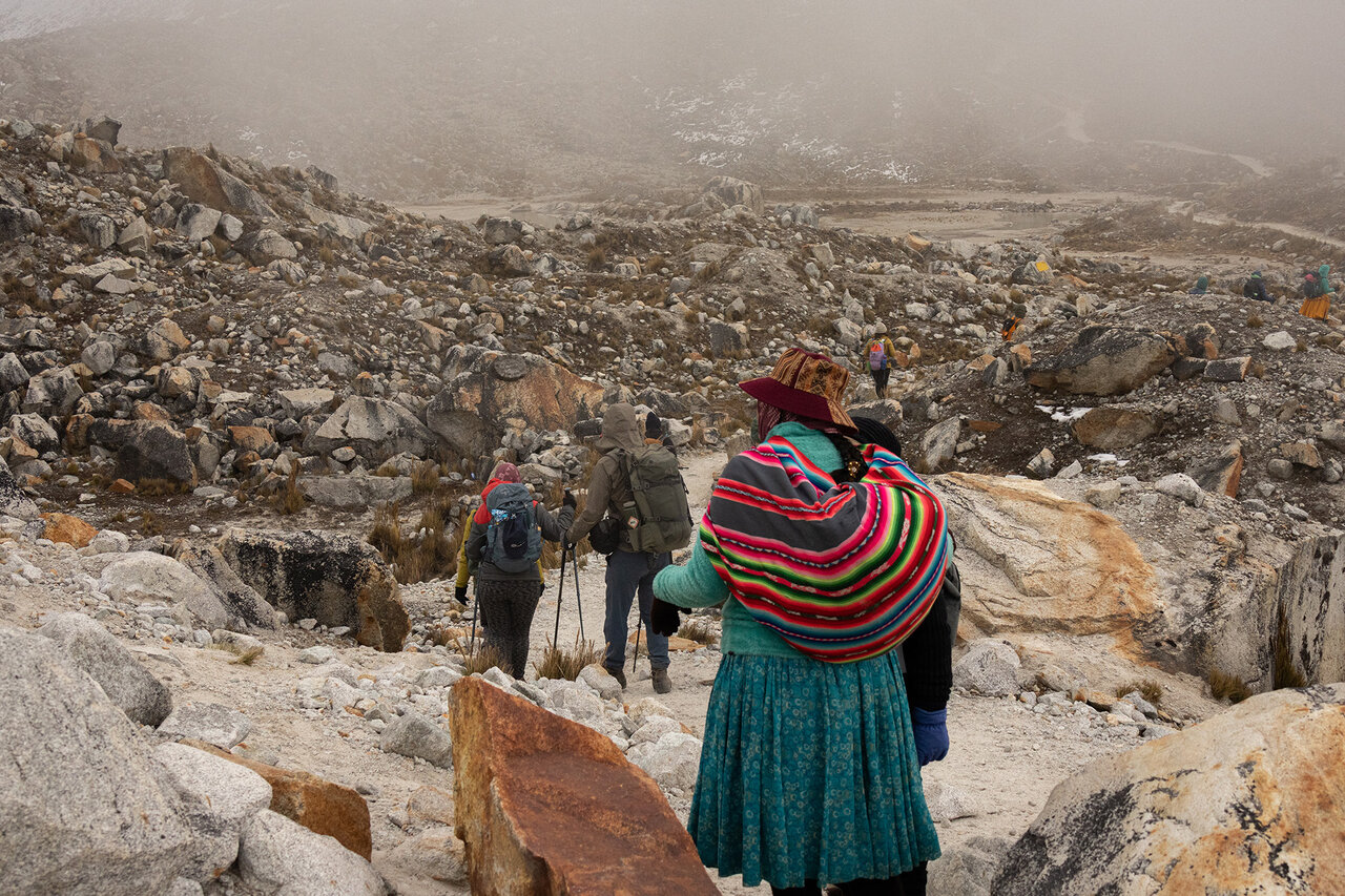 最初に向かったのは「Laguna Janq’u Quta」。歩き始めて間もなく、少し息苦しさを感じた。1歩登るだけのことがこんなに苦しいのかと高山の厳しさを実感する。もちろんチョリータたちの歩幅は一定で、呼吸も乱れない。