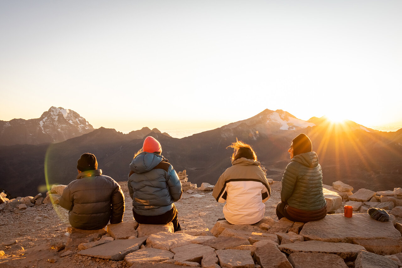 やっとの思いで到着した“LAS ROCKAS”から夕陽に染まる山の稜線を見ながら、温かいスープを囲み、チョリータたちの人生の話を聞いた。滑落の経験、初めて氷壁を登った日の恐怖、女性として山を歩くという選択がどんな意味を持ったか。そのどれもが、単なる「登山」では語りきれないストーリーだった。