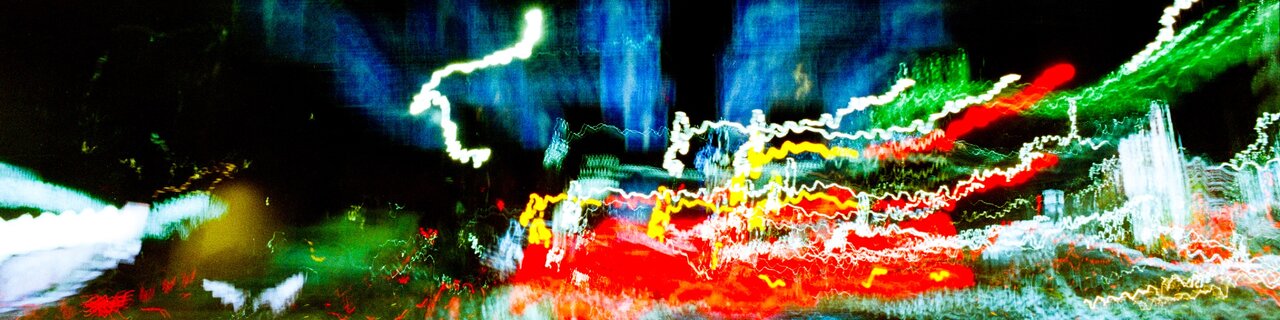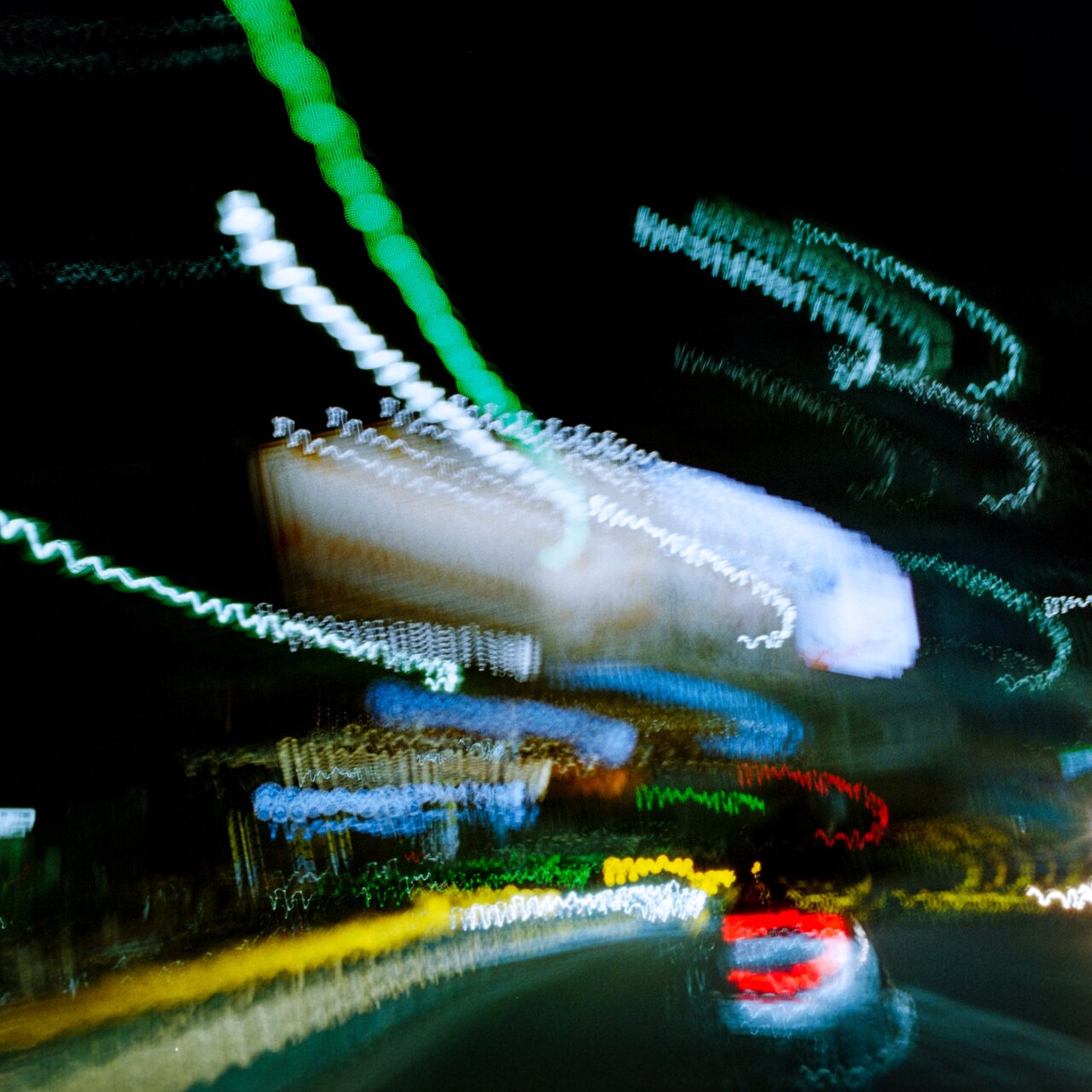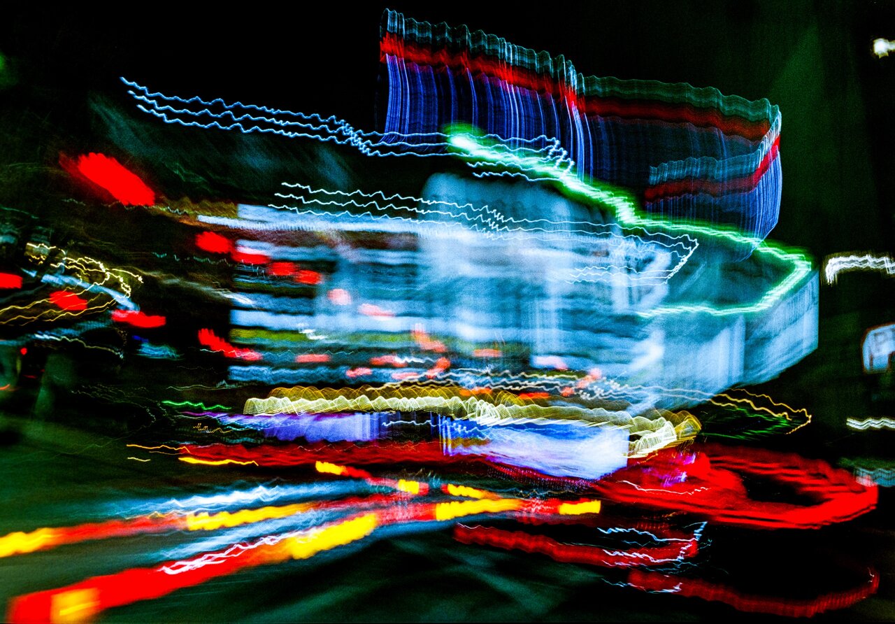 運転と風の振動によって夜の街を描き出すシリーズ。