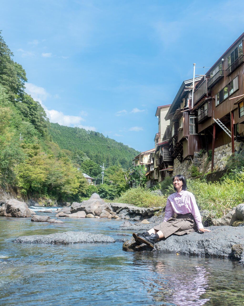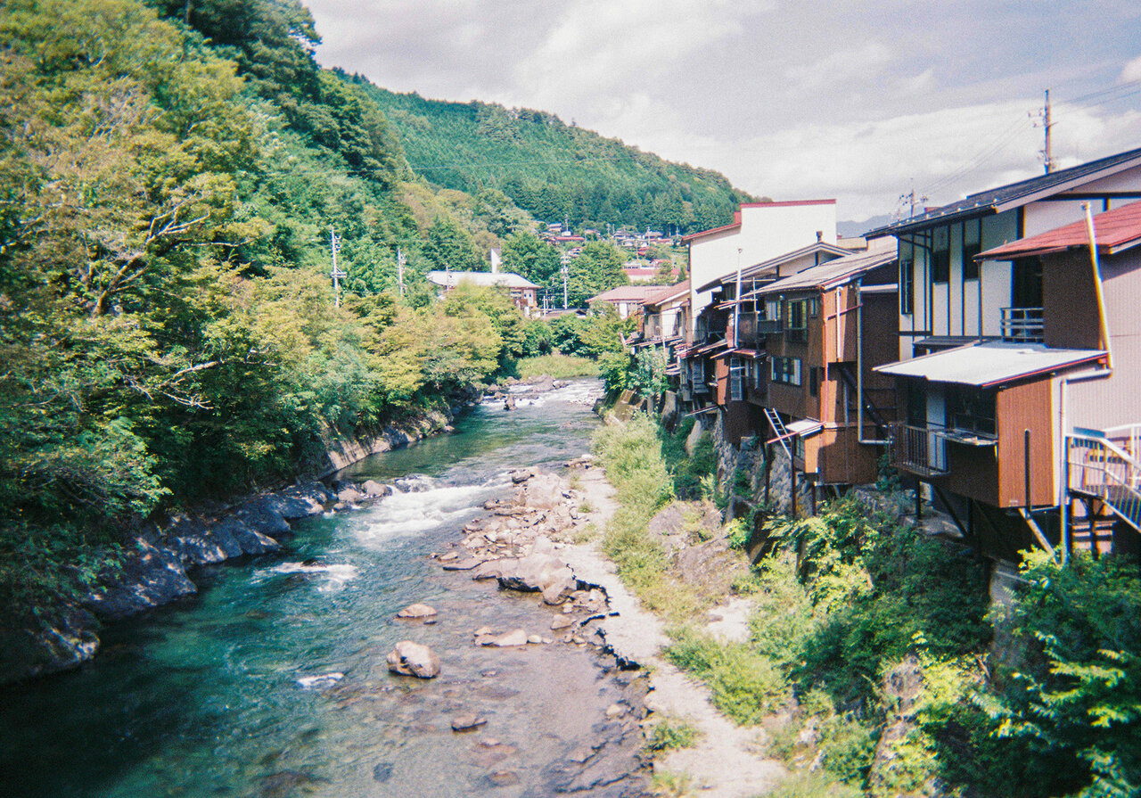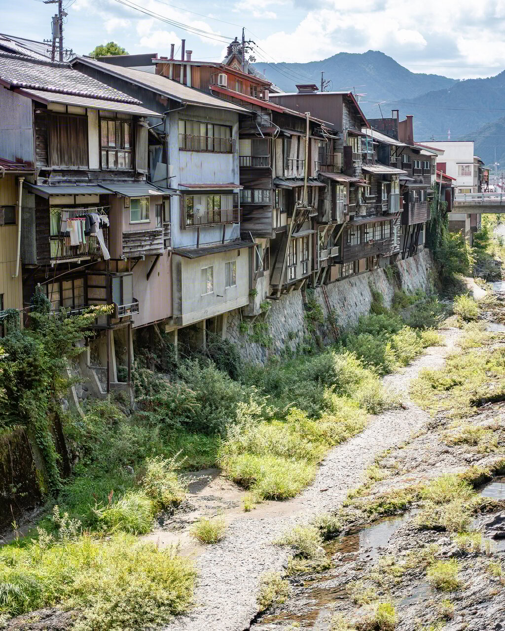 川にせり出したように立ち並ぶ「崖家造り」の家々。狭い土地を有効に使うという、昔の人の暮らしの知恵から生まれた光景。