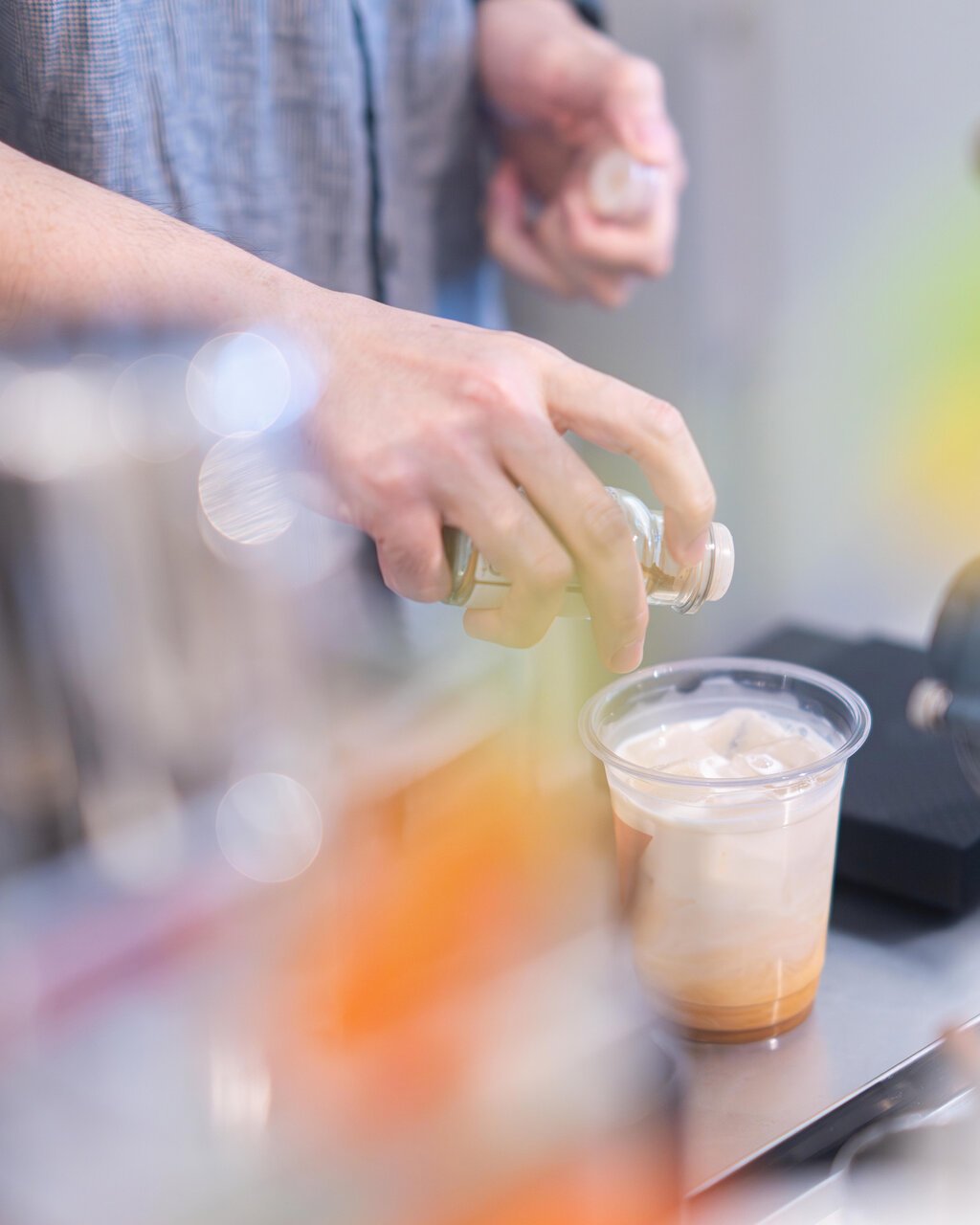 「自家製チャイラテ」のアイス。自家製のチャイシロップでつくられた一杯。オリジナルブレンドスパイスと、たっぷりの生姜がアクセント。