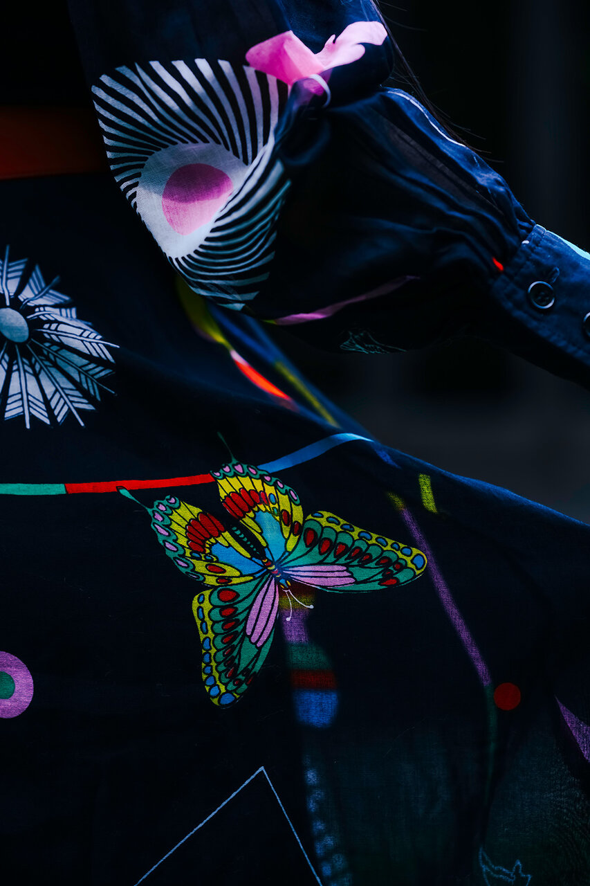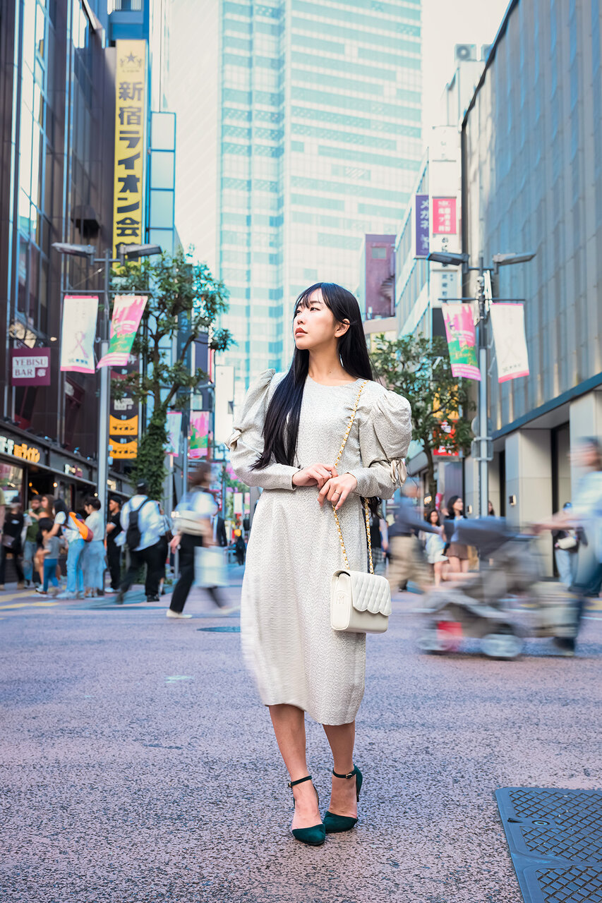 森英恵さんの服は、ただ美しいだけでなく、着る人の心にときめきを与えてくれます。東京・ニューヨーク・パリ——森さんが歩んだ街を舞台に、「森に生まれた夢」「世界に羽ばたく蝶」というイメージで構成しました。会場では、実際に森さんのヴィンテージ衣装にも触れていただけます。肌触りのよさはもちろん、アイロン不要のシワにならない素材、ポケットのついた機能的なデザイン。写真と合わせて、森英恵さんの服が持つ“纏うことで生まれる美しさ”と、その想いを感じていただけたら幸いです。