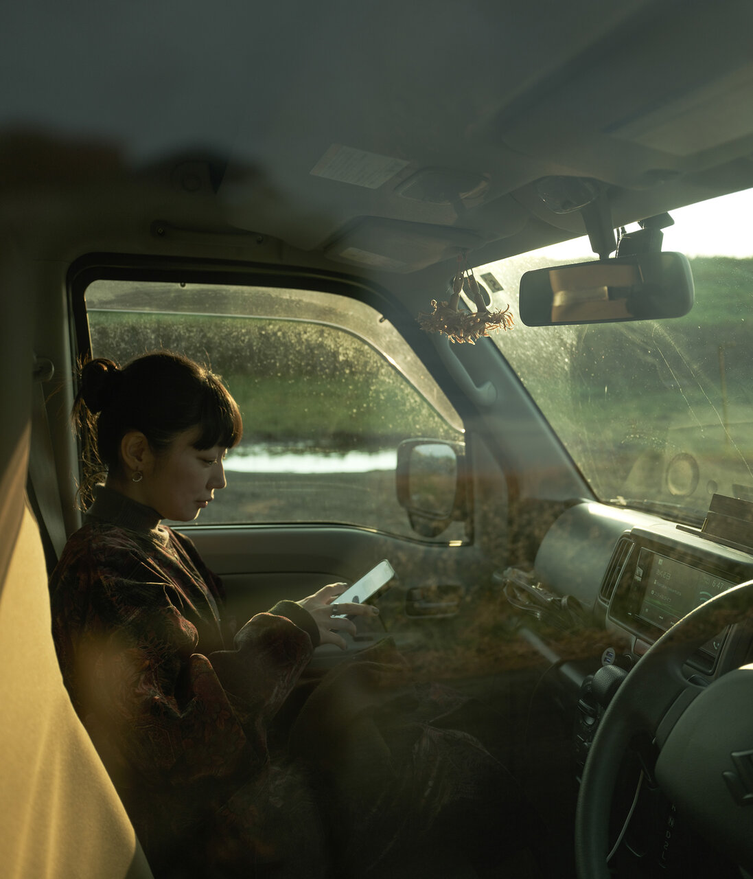 今回使ったGFX100RFは、中判カメラの趣や描写力を損なわず、GFXシリーズ最軽量かつ機動力が高いことが魅力でした。ピントもオートで合わせてくれてスナップ感覚で撮影できるのに、圧倒的な描写力。ふとした時にさっと取り出して、普段は撮り逃してしまう何気ない瞬間をしっかりと残すことができました。また、レンズ一体型カメラですが、「アスペクト比切換ダイヤル」で簡単に画角を切り替えられることもいいなと感じました。いざ撮りたい瞬間があっても、レンズ交換のタイミングを逃してしまい、写真に残せなかった経験が今まで何度もあります。GFX100RFのクロップ機能は、ひとつのレンズのままでも自然な感覚で画角を切り替えられるため、とくにロケや旅先で大変心強かったです。アスペクト比も1:1、3:4、7:6、3:2と自由に切り替えられるため、被写体や空間、光の印象に合わせて最も美しく感じられる比率を選ぶことができます。撮影の自由度が高まることで、表現の幅も広がりました。