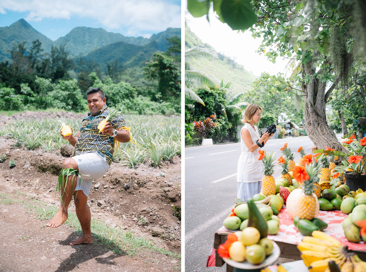 モーレア島の名産品といえば、パイナップル。「クイーンタヒチ」と呼ばれる品種は、甘くてジューシー、さらに芯まで食べられるのが特徴です。ガイドの所有地にあるパイナップル畑を訪れ、栽培方法や生態について学びながら、採れたてを試食。立ち寄ったフルーツの路面店では、現地の方との交流も楽しめました。